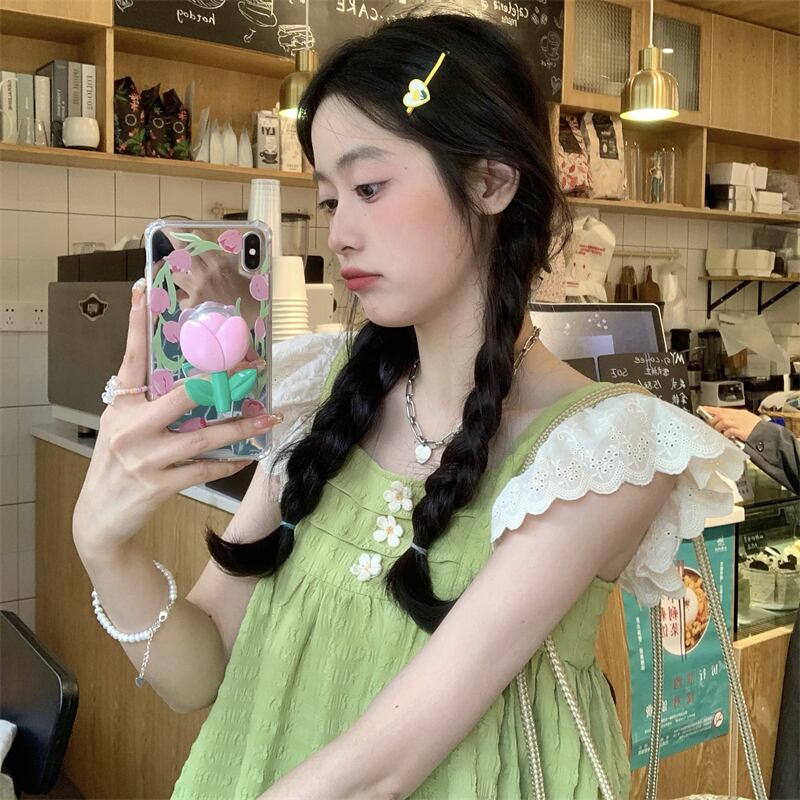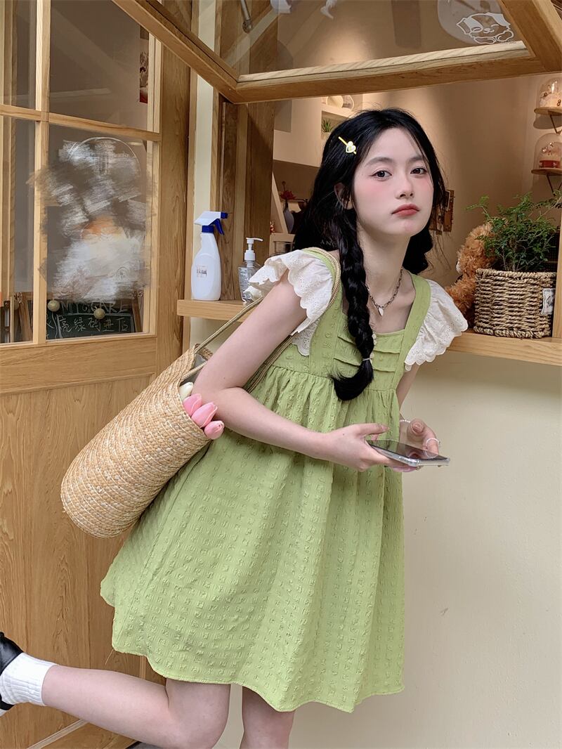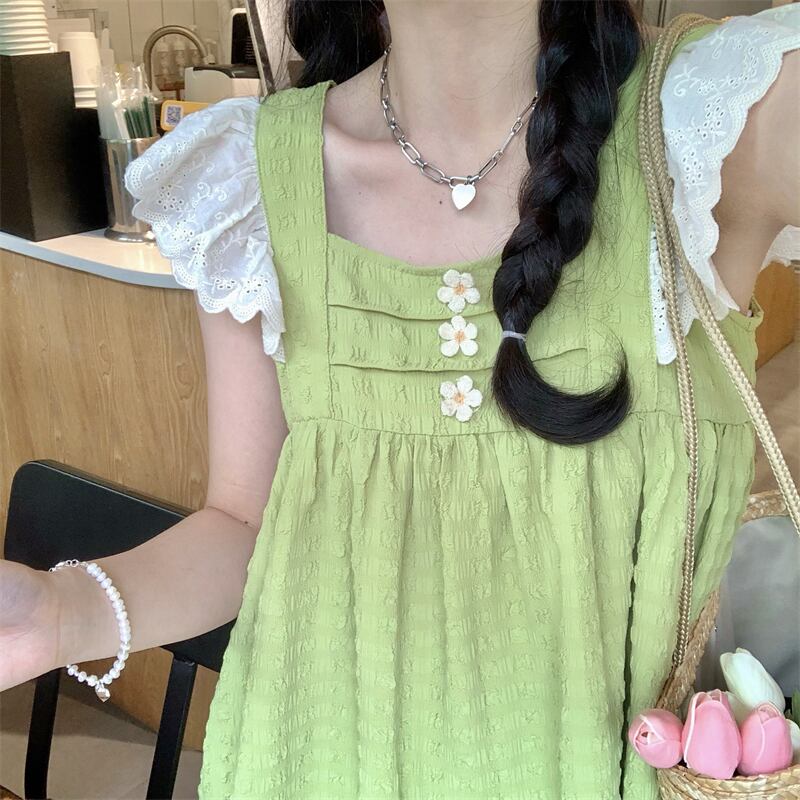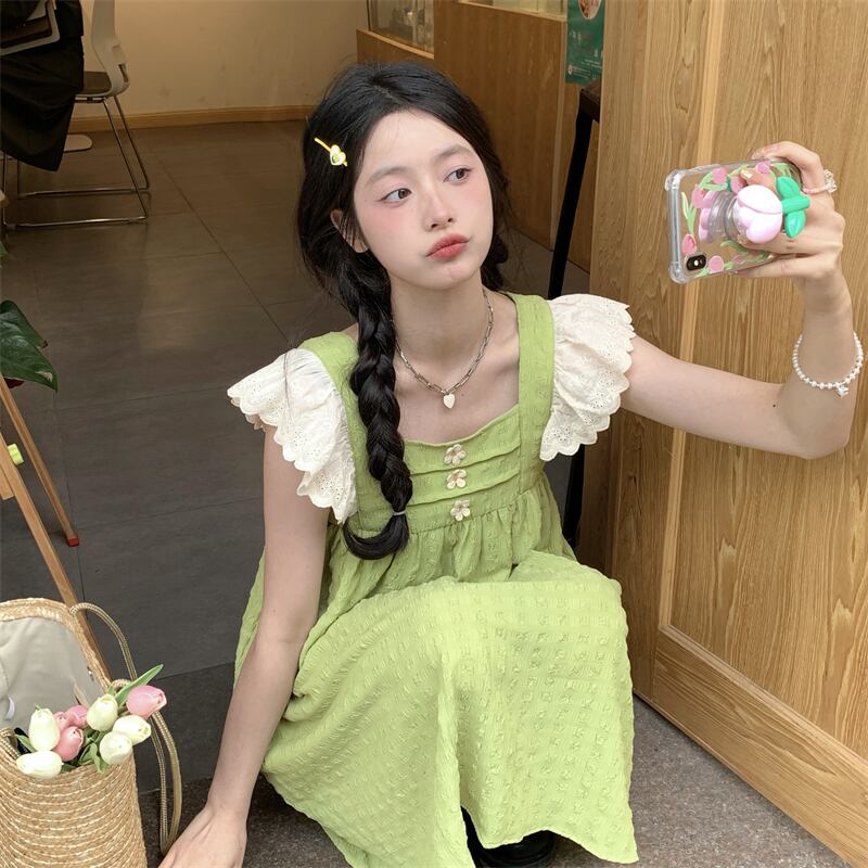 スリーブグリーンカラードレス サマースカート 夏物 s576183460887050