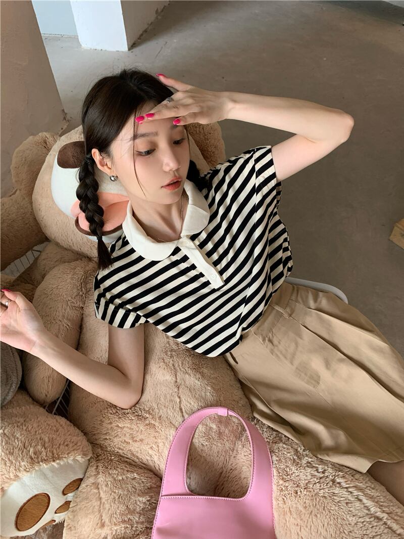 カラーストライプTシャツ サマールーズカジュアルトップス 夏物 s576120129045422