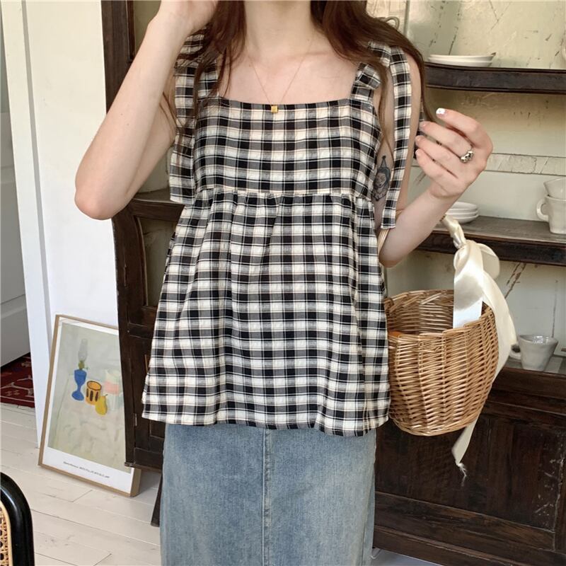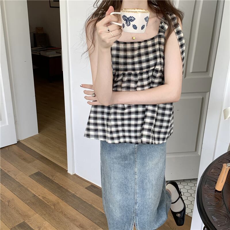 スタンダードレース格子柄サマーショートシャツ トップス レトロ 夏物 s576156328628629