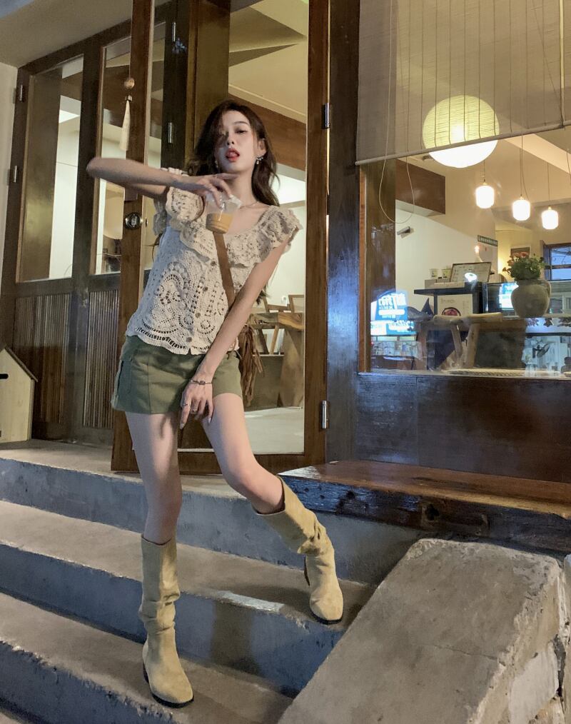 色:アプリコットトップ,アーミーグリーンスカート