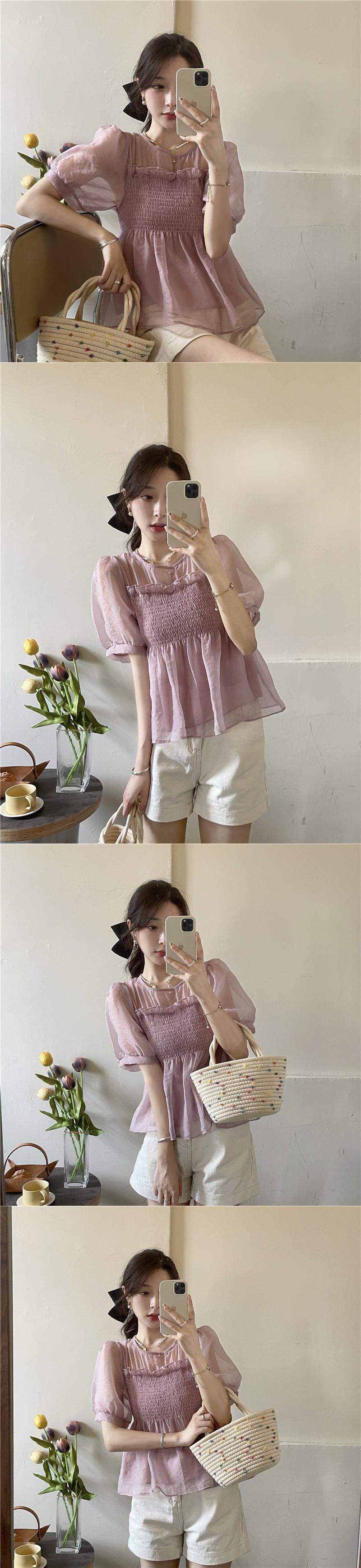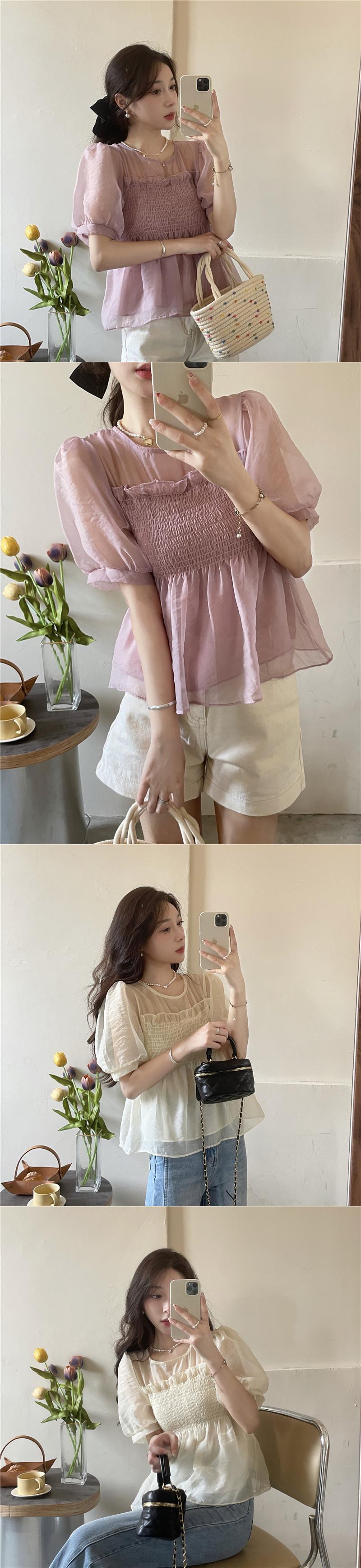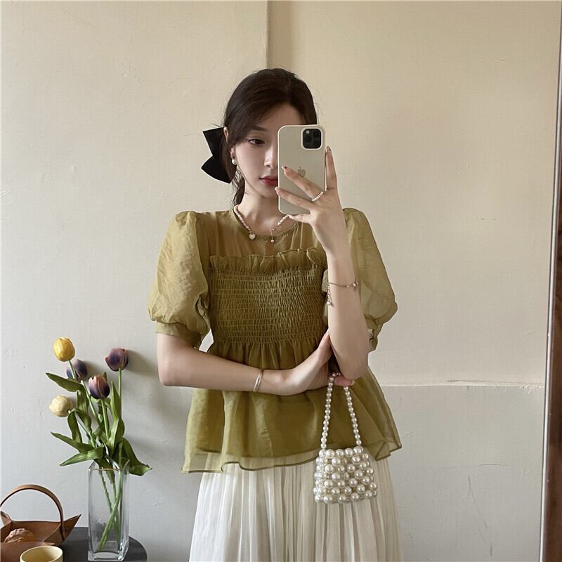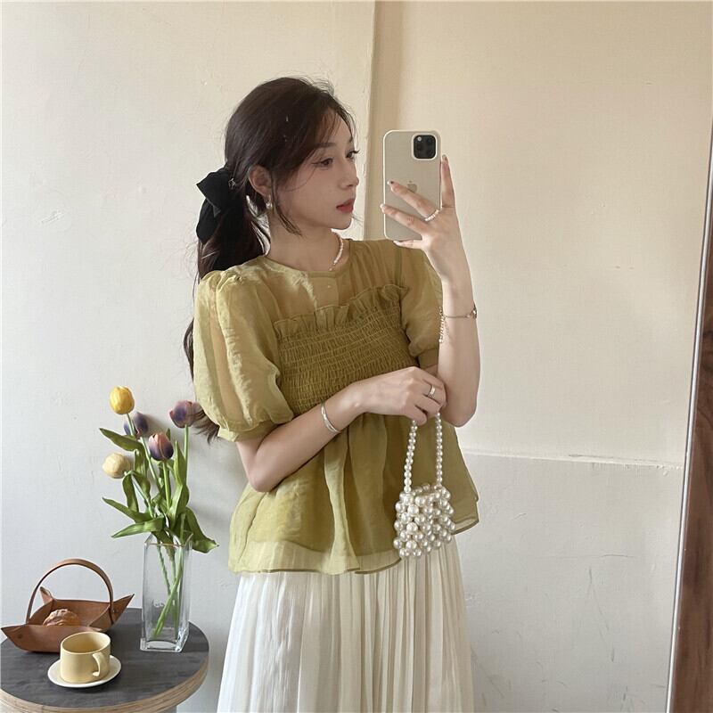 スリーブトップス サマーシフォンシャツ 夏物 s576186339250447