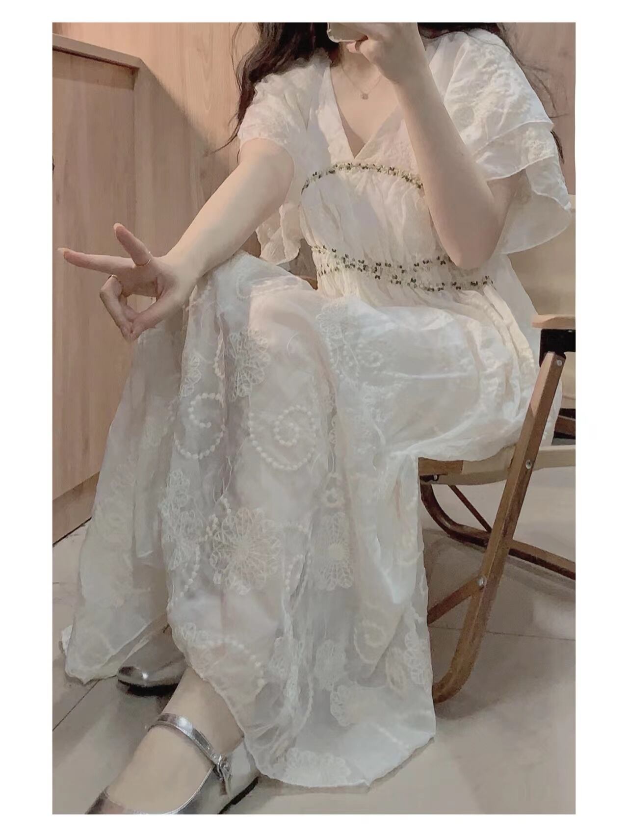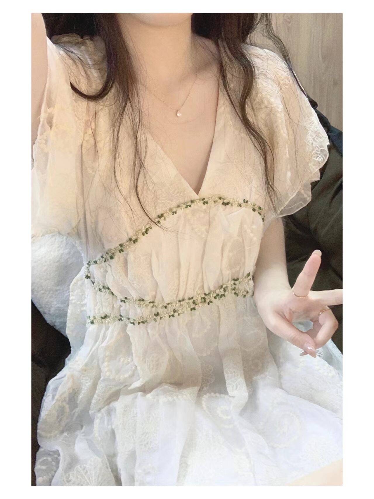 Vネックドレス サマースタイルロングスカート 大人ガーリー スウィート キュート カジュアル 夏物 s576162592505367