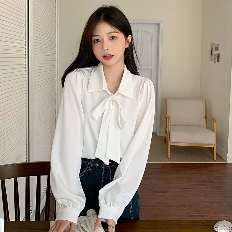 ホワイトシャツ スプリングオータムスタイルリボントップス ロング 大人ガーリー スウィート キュート カジュアル 春物 秋物 s57611026079461