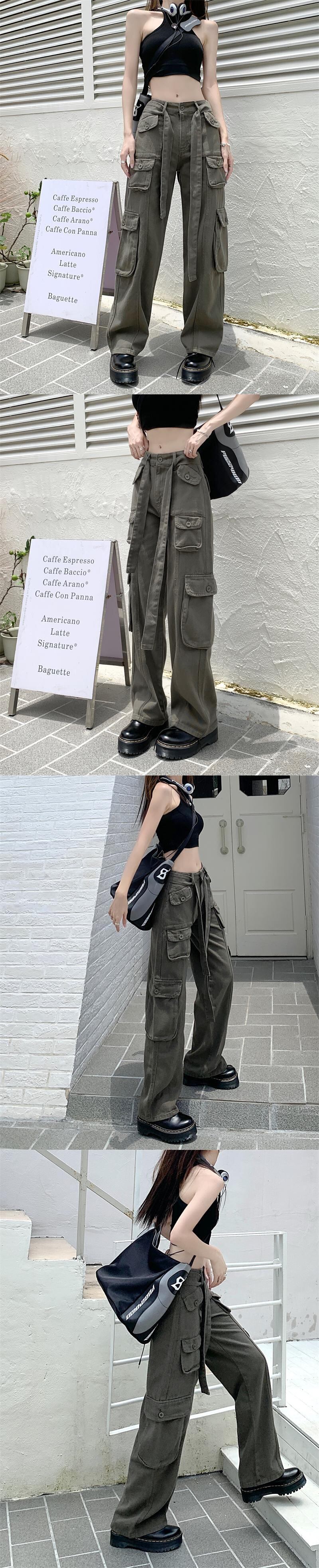オーバーオール グレーサマーハイウェストウェストルーズワイドレッグパンツ ストリート 夏物 ワイドパンツ s576126805013349