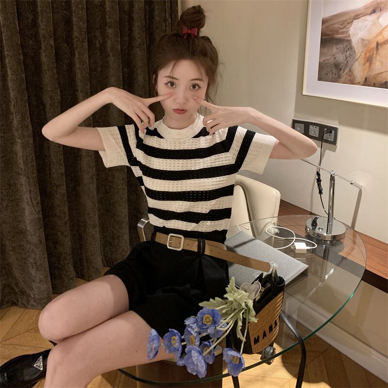ストライプセーター サマー薄手ショートトップス 夏物 s576124060651740