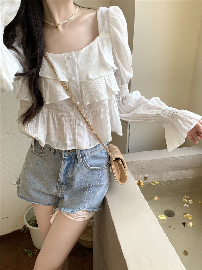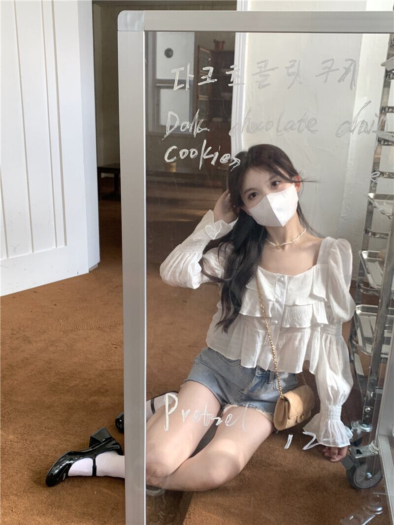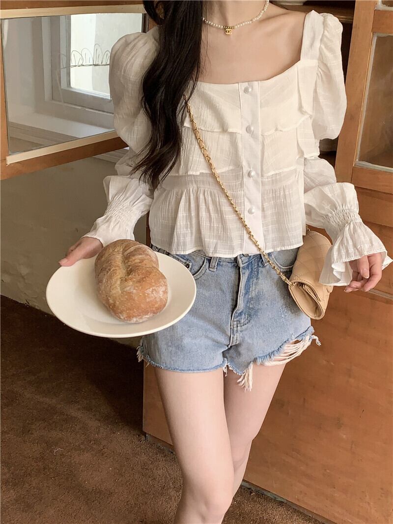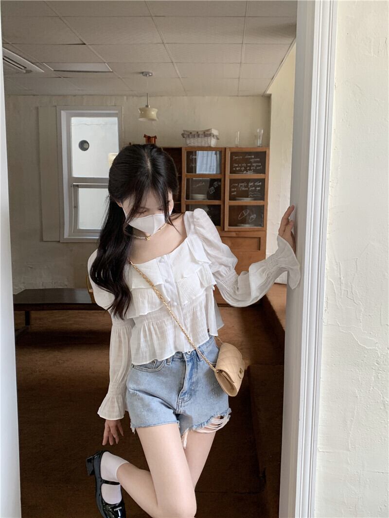 薄手シフォンシャツ サマーカラースリーブショートトップス 夏物 スクウェア s576164643191794