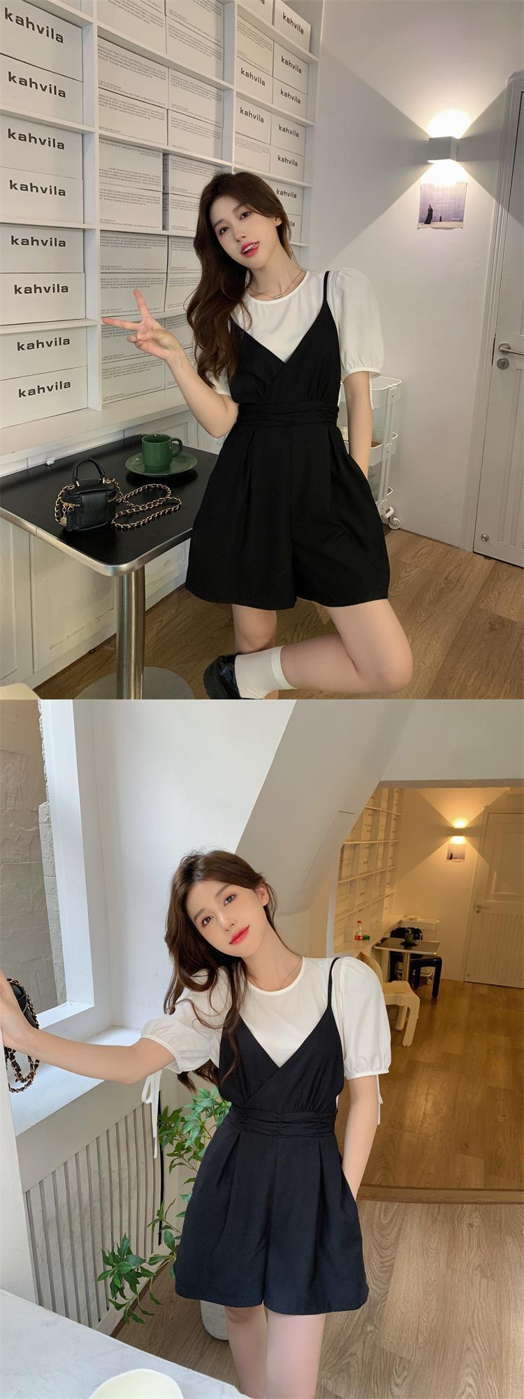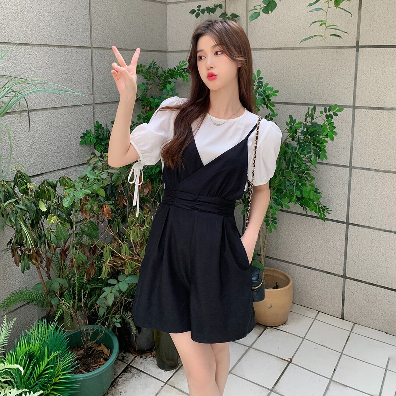 ブラックオーバーオール サマーカジュアルショーツ 薄手ジャンプスーツ オールインワン 夏物 ブルマー s576199081915297