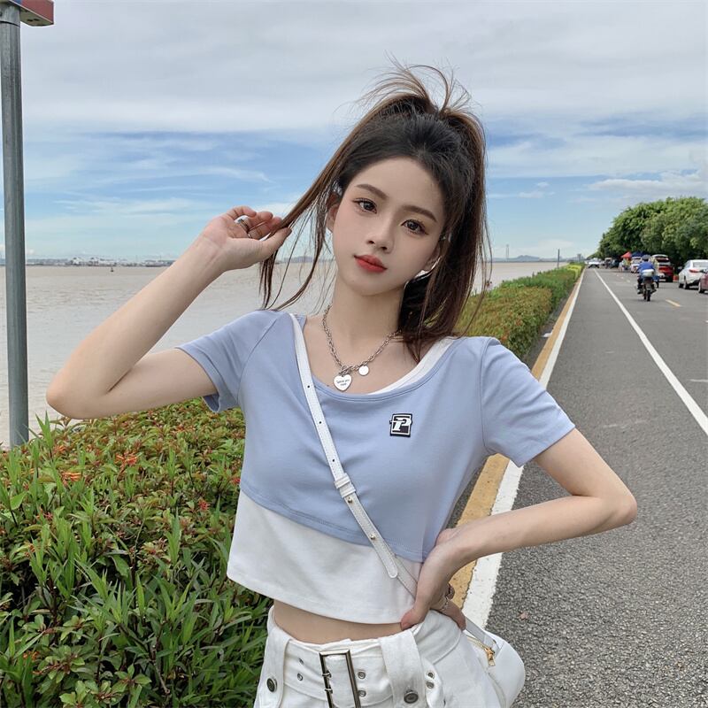 半袖スリーブTシャツ レディースサマーツーピーストップス ショート ハーフスリーブ 夏物 s576153390307745