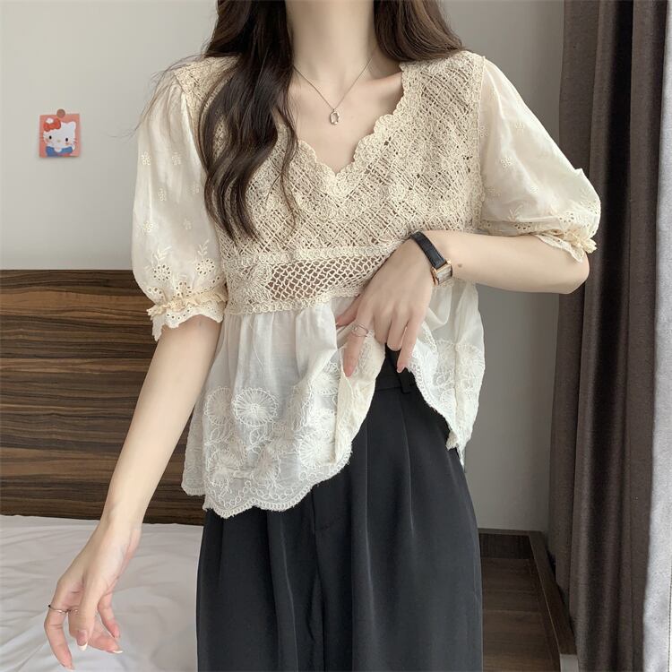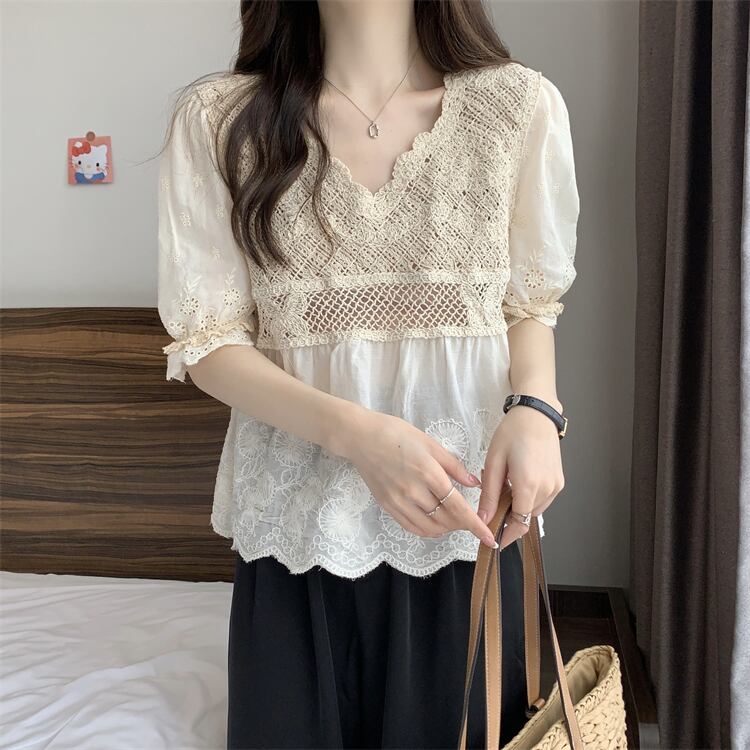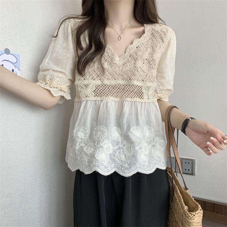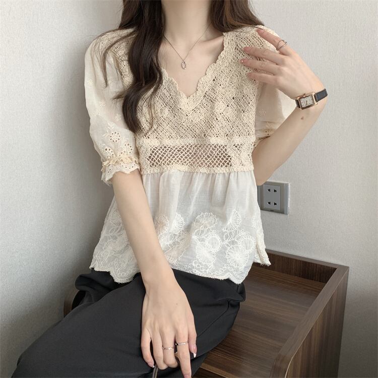 Vネックレースシャツ サマー薄手トップス 夏物 s576161694239249