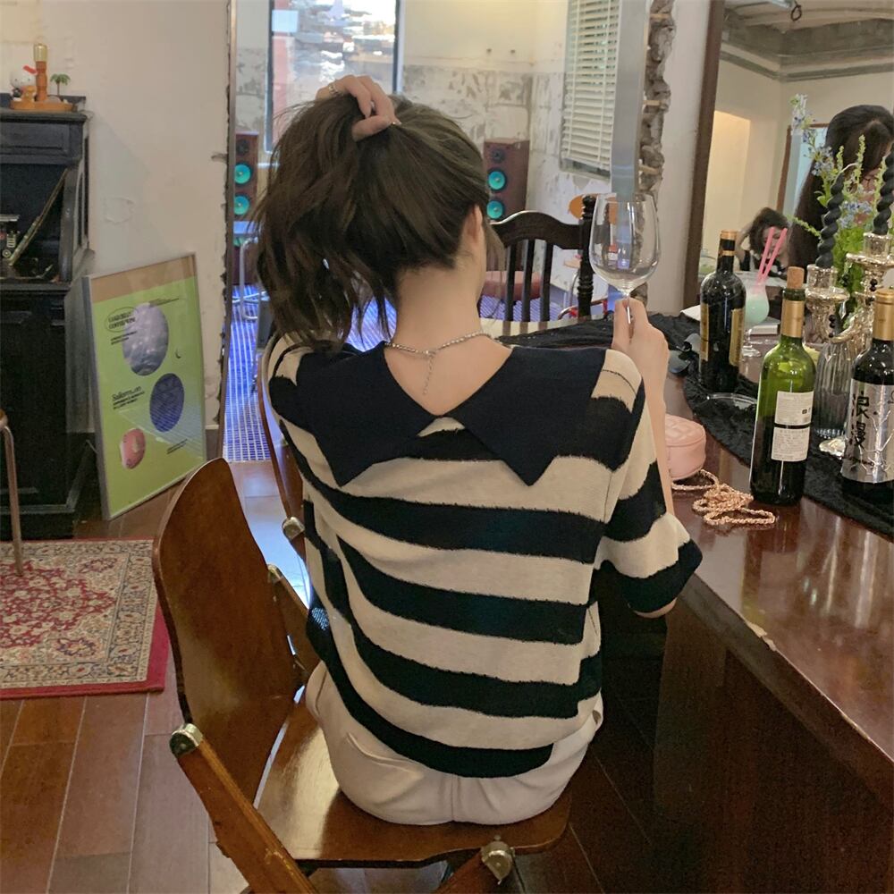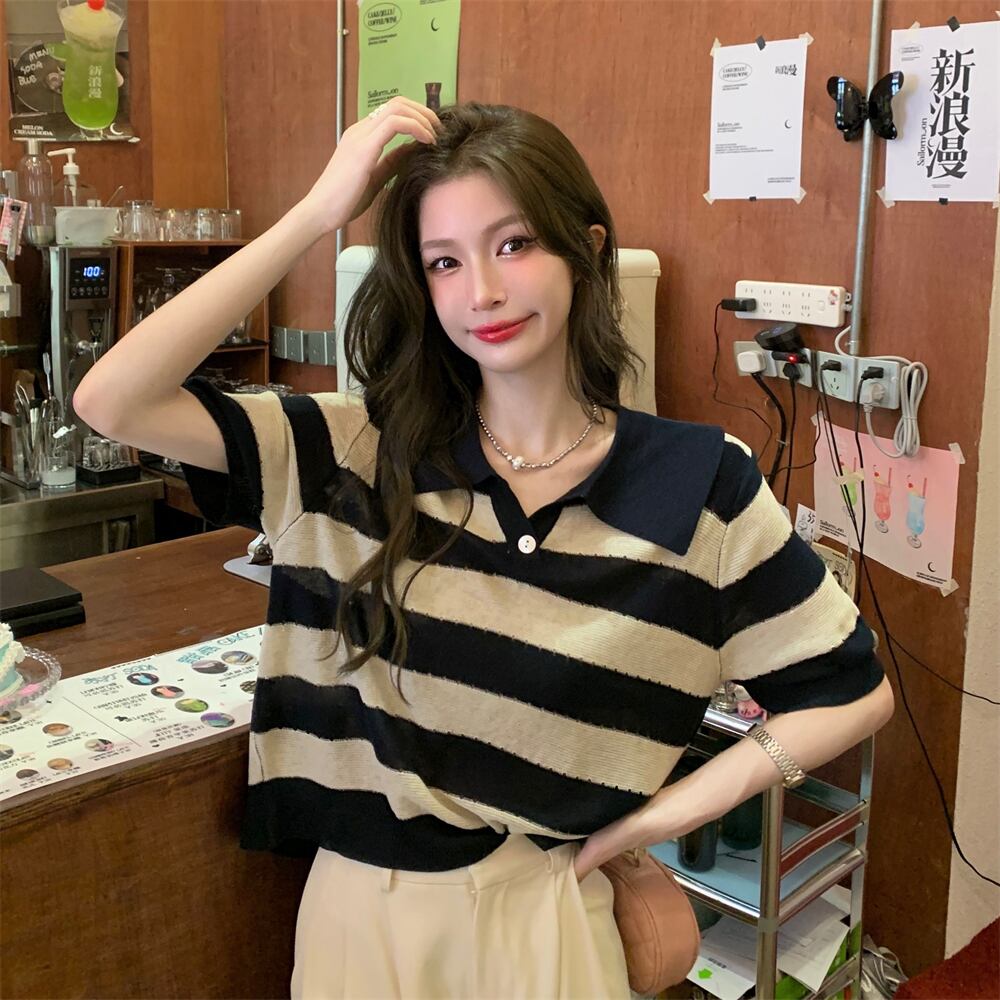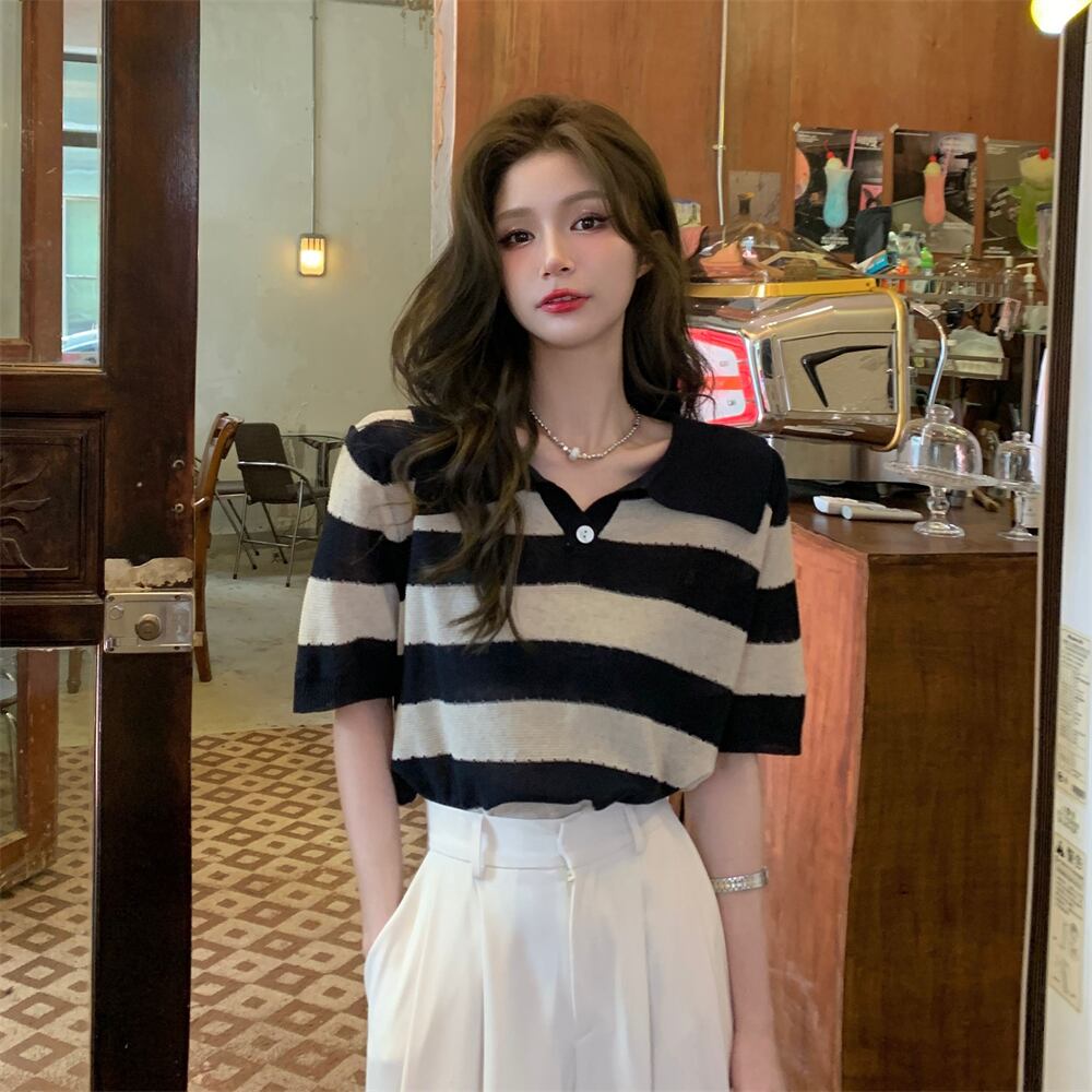 スタンダードストライプTシャツ サマースタイルカラートップス レトロ 夏物 s576173424257686