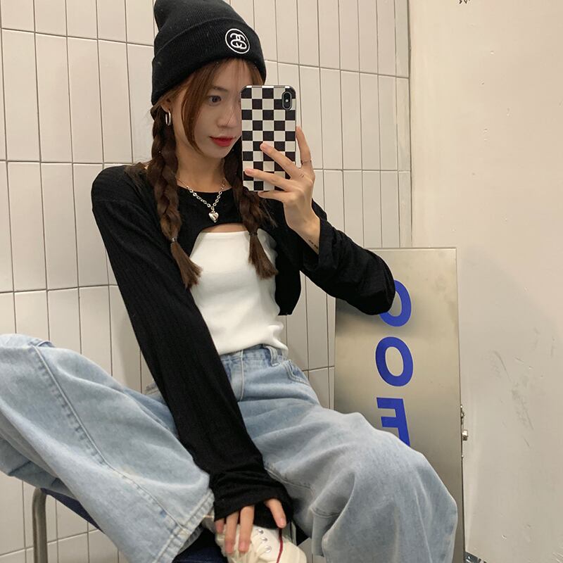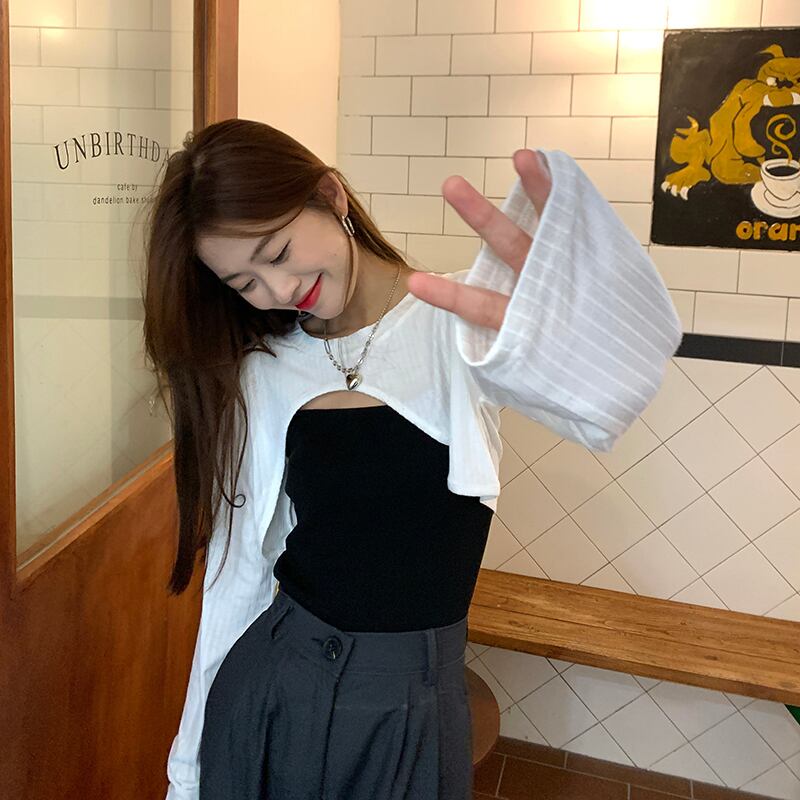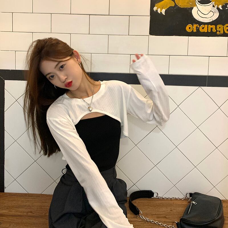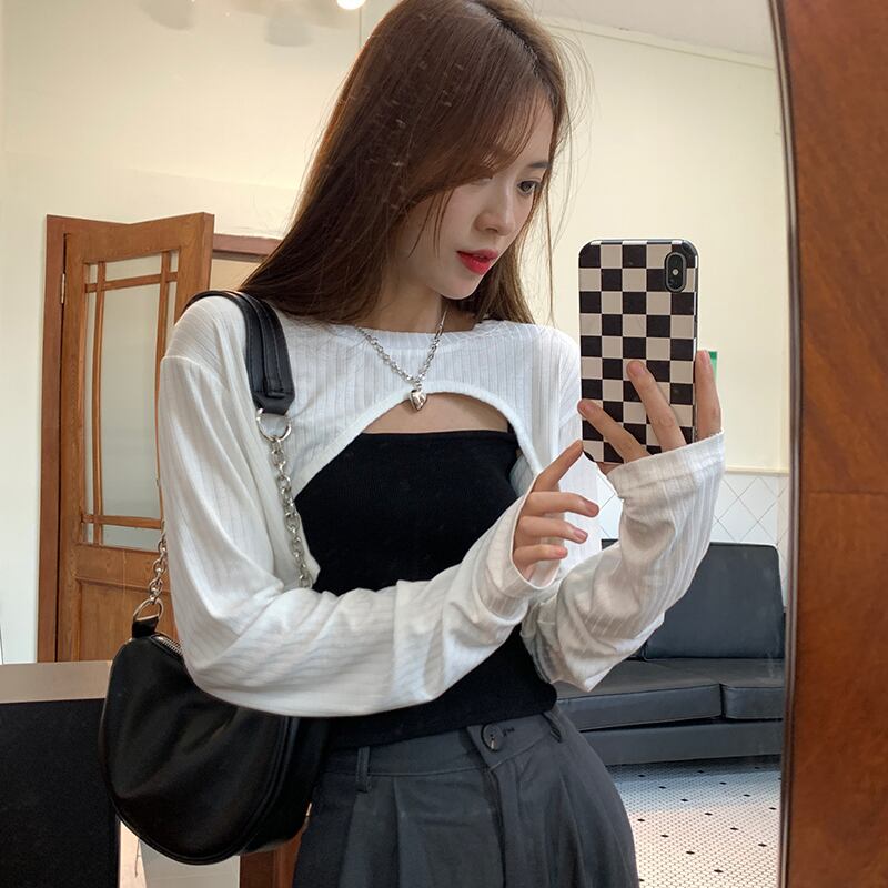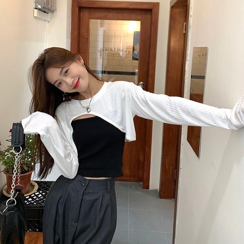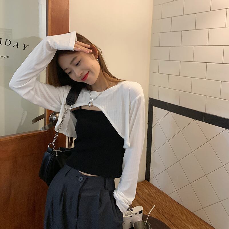 ホワイトTシャツ サマー薄手ブラウス ショートトップス セット ロング 夏物 s576155334085406