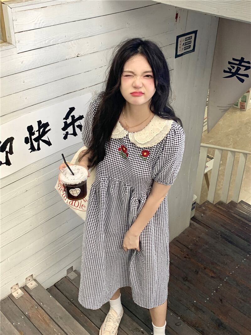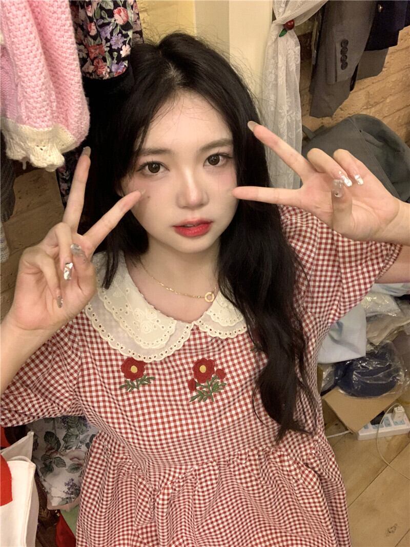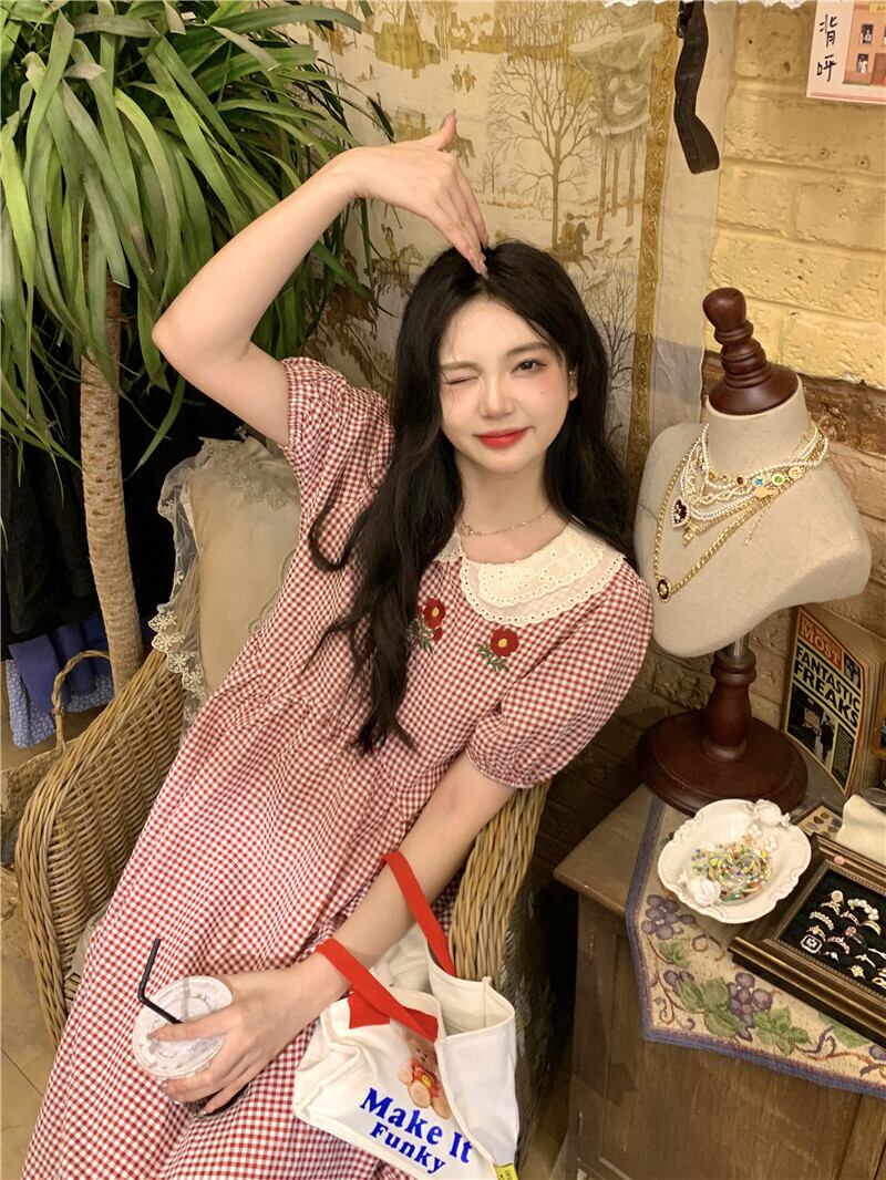 スタンダードスリムハイウェストウェスト格子柄スカート カラードレス レッド レトロ 刺繍 s576128697975580