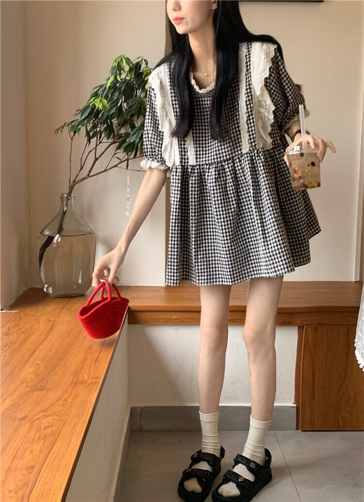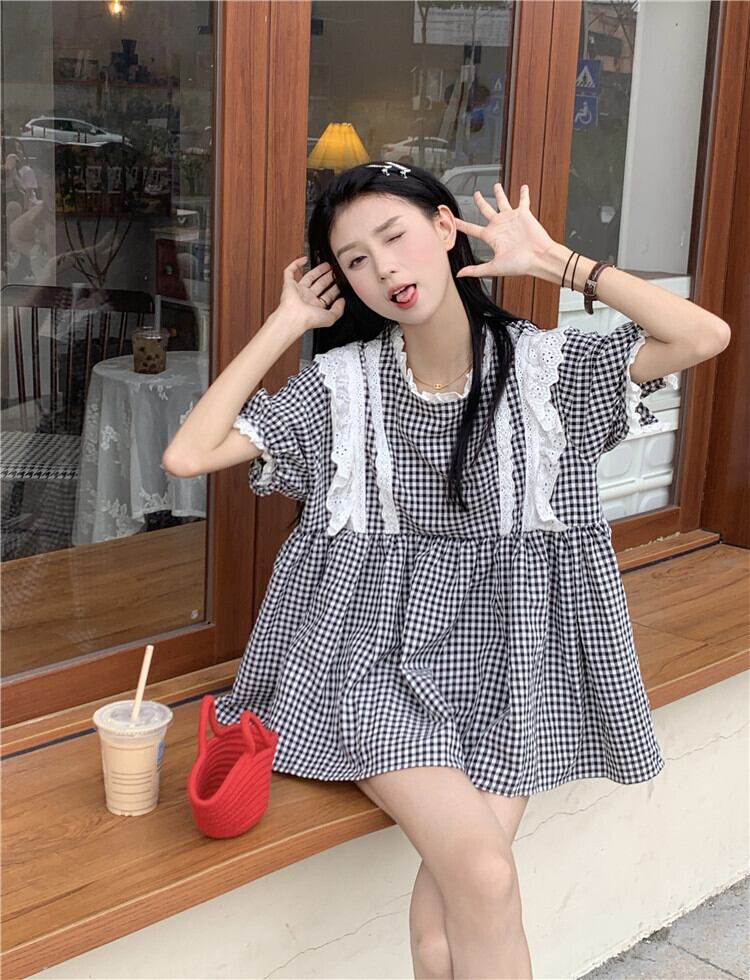 トップス サマースリーブ格子柄シャツ 大人ガーリー スウィート キュート カジュアル 夏物 s576178418824439