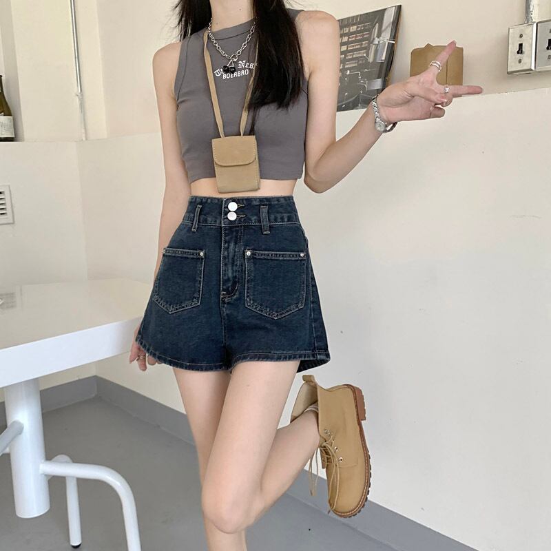 スタンダードショーツ サマーハイウェストウェストルーズ薄手ワイドレッグパンツ レトロ 夏物 ブルマー ワイドパンツ s576189608331555