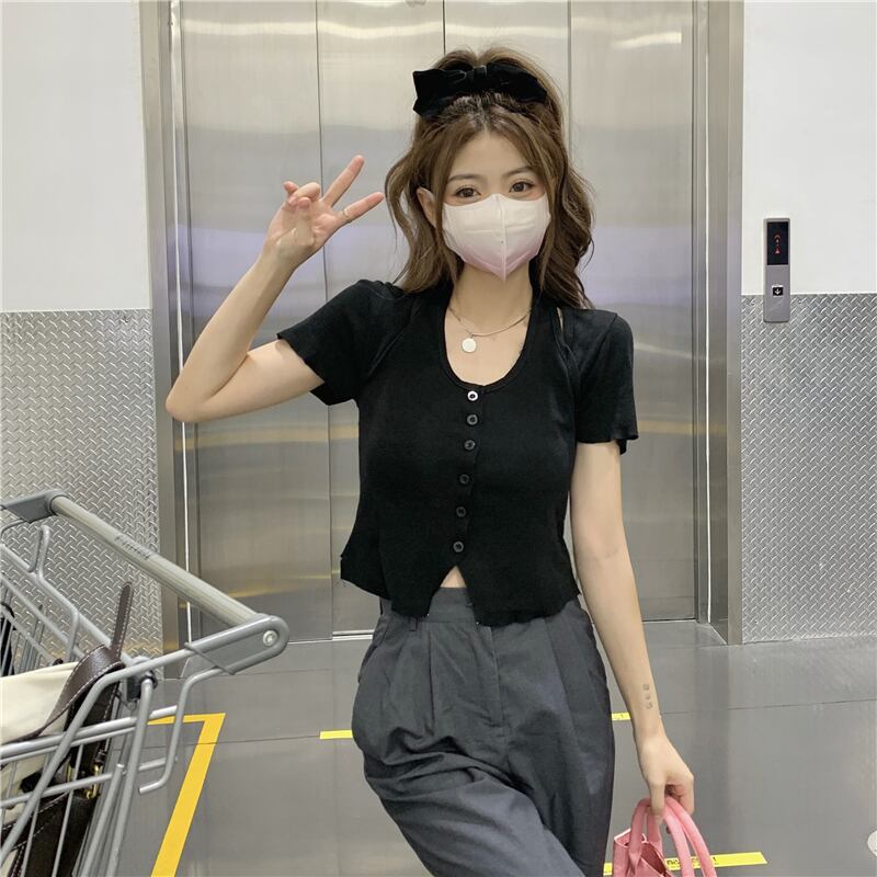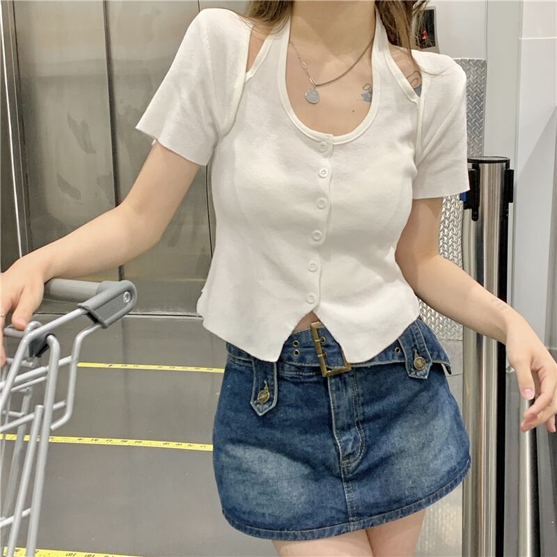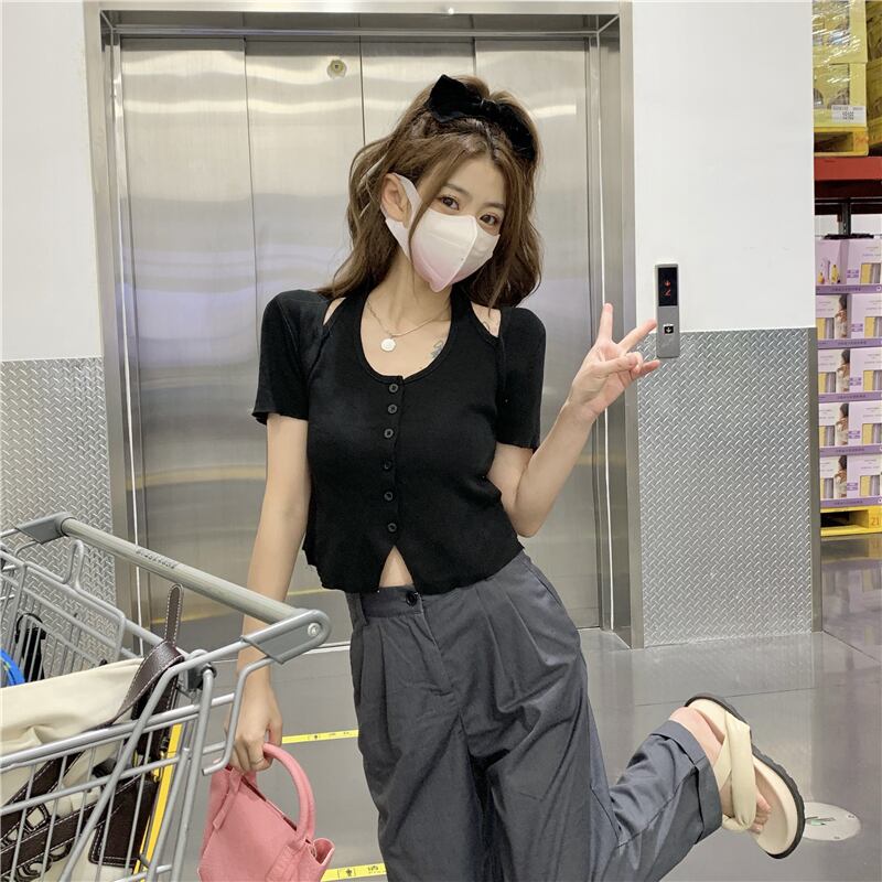 ホルタースリムフィットショートトップス サマーニットセーター Tシャツ 夏物 s576142501633451