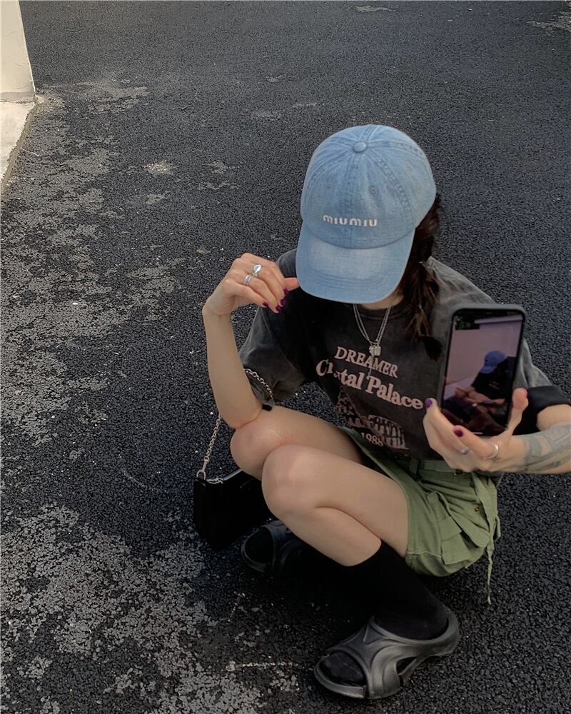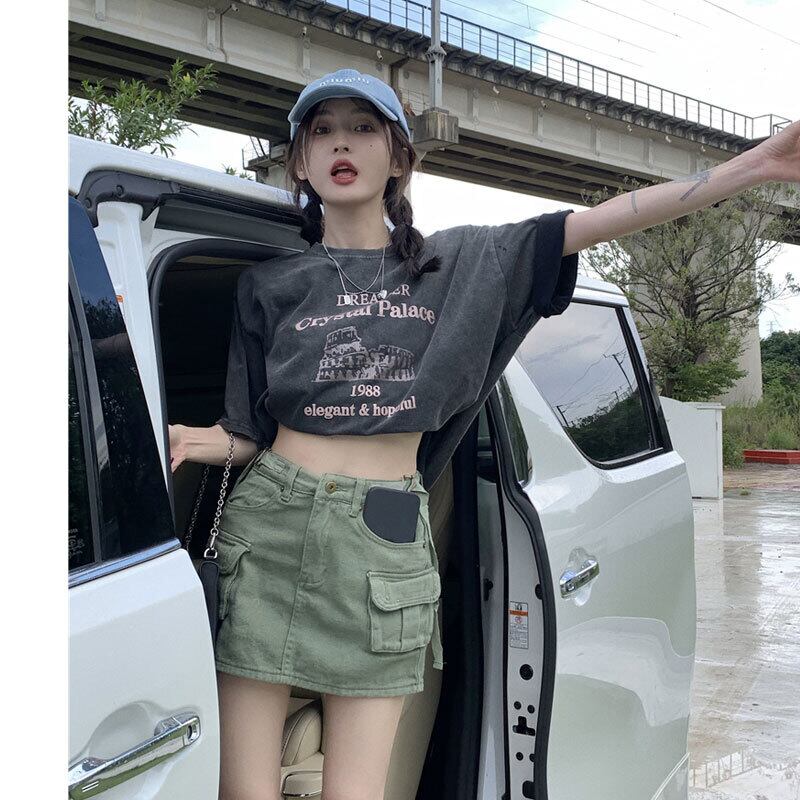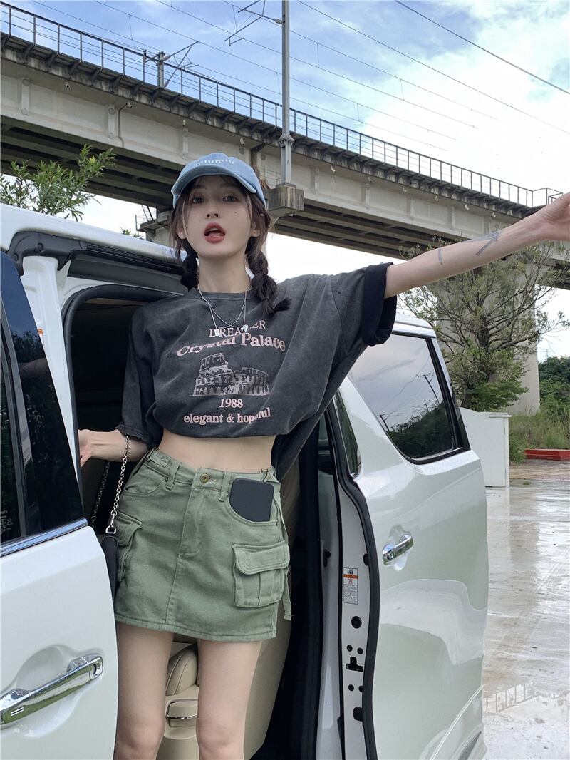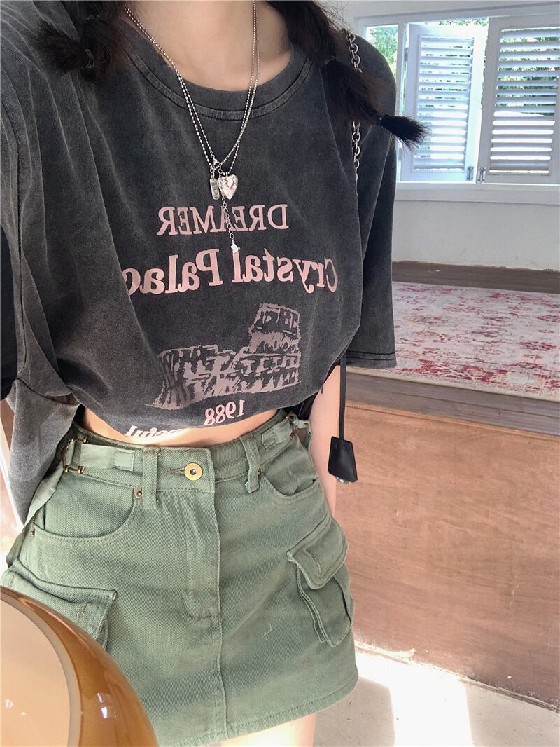 色:washedグレーt-shirt,アーミーグリーンスカート