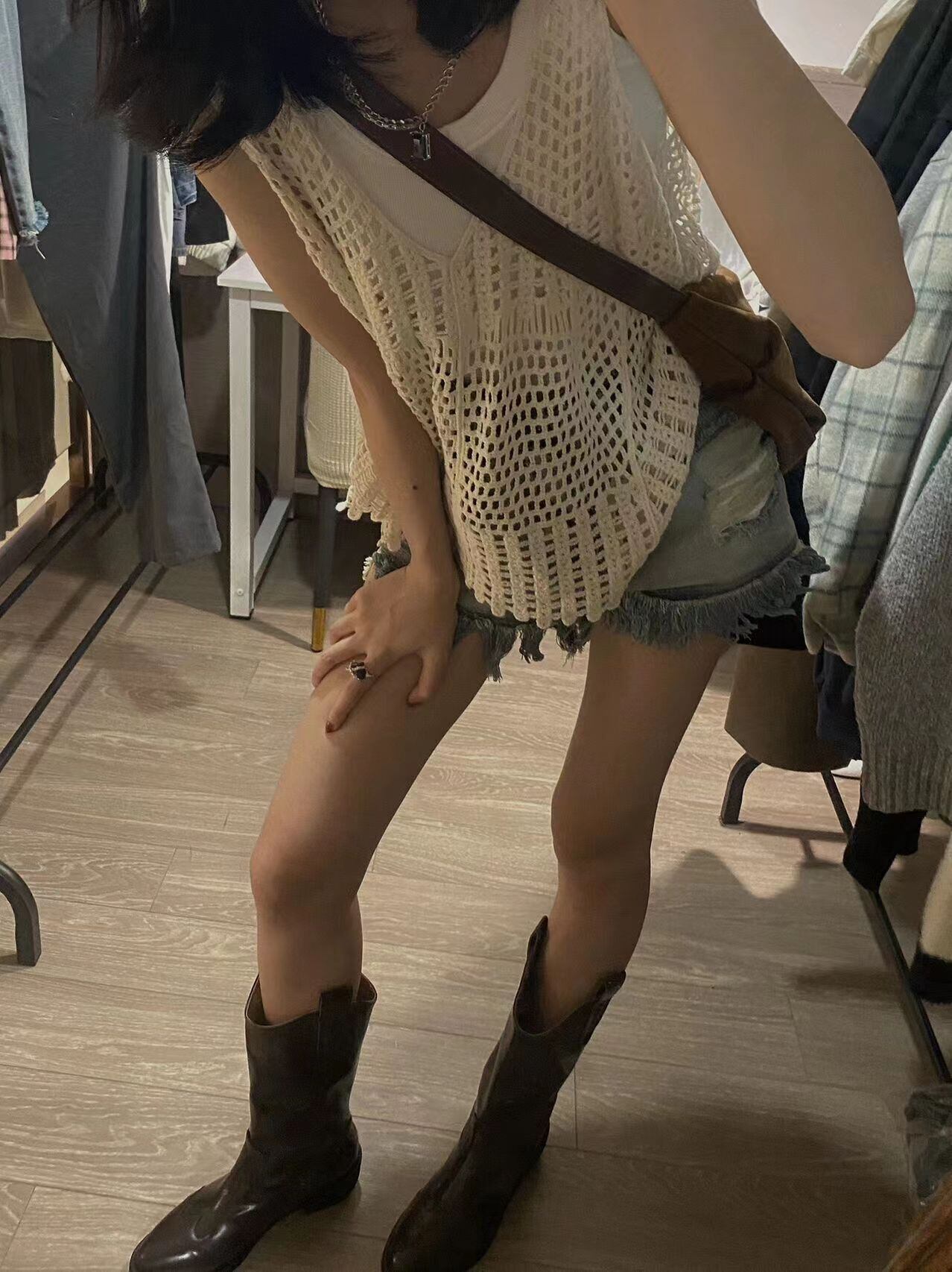 ニットサマースタンダードルーズノースリーブトップス ブラウス レトロ 夏物 s576142041202201