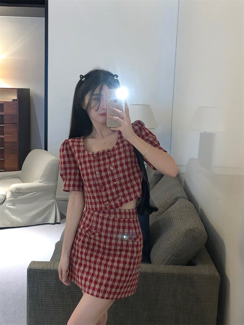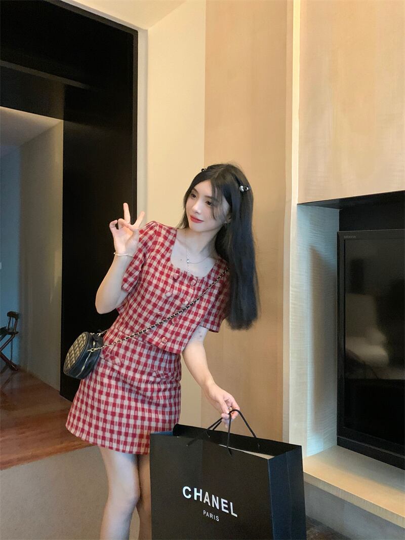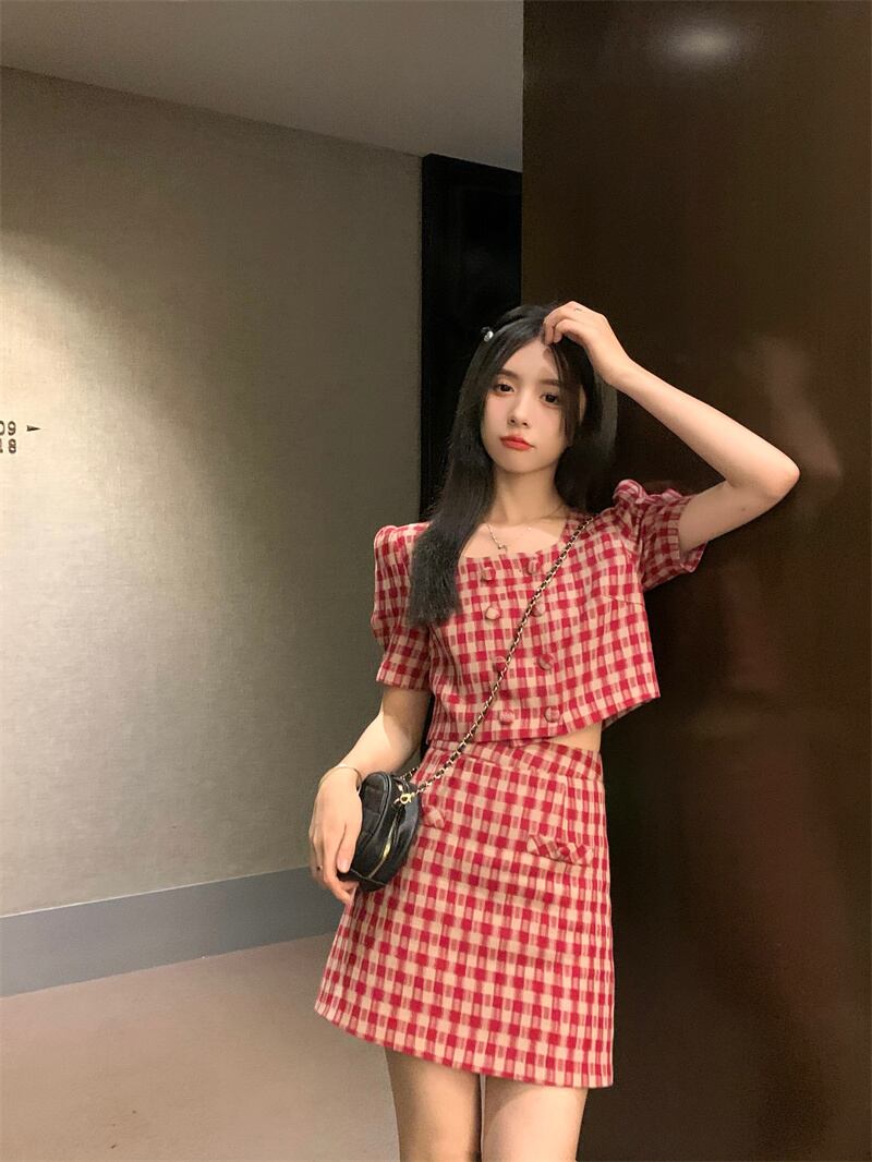 色:レッドチェックトップ+スカート