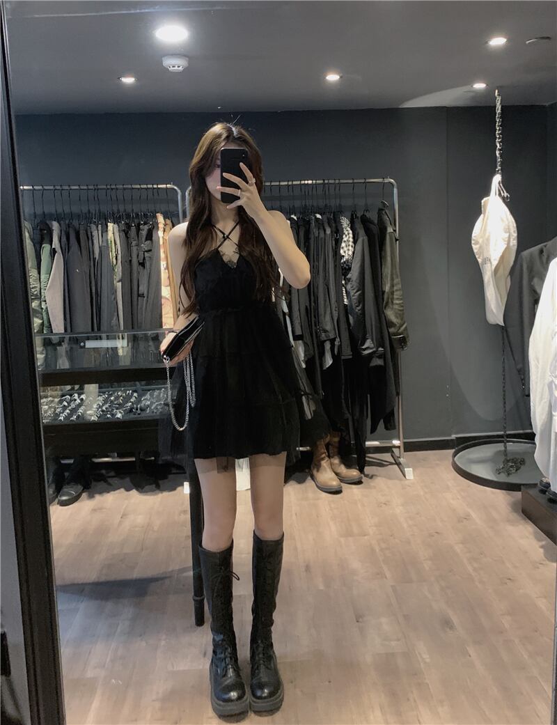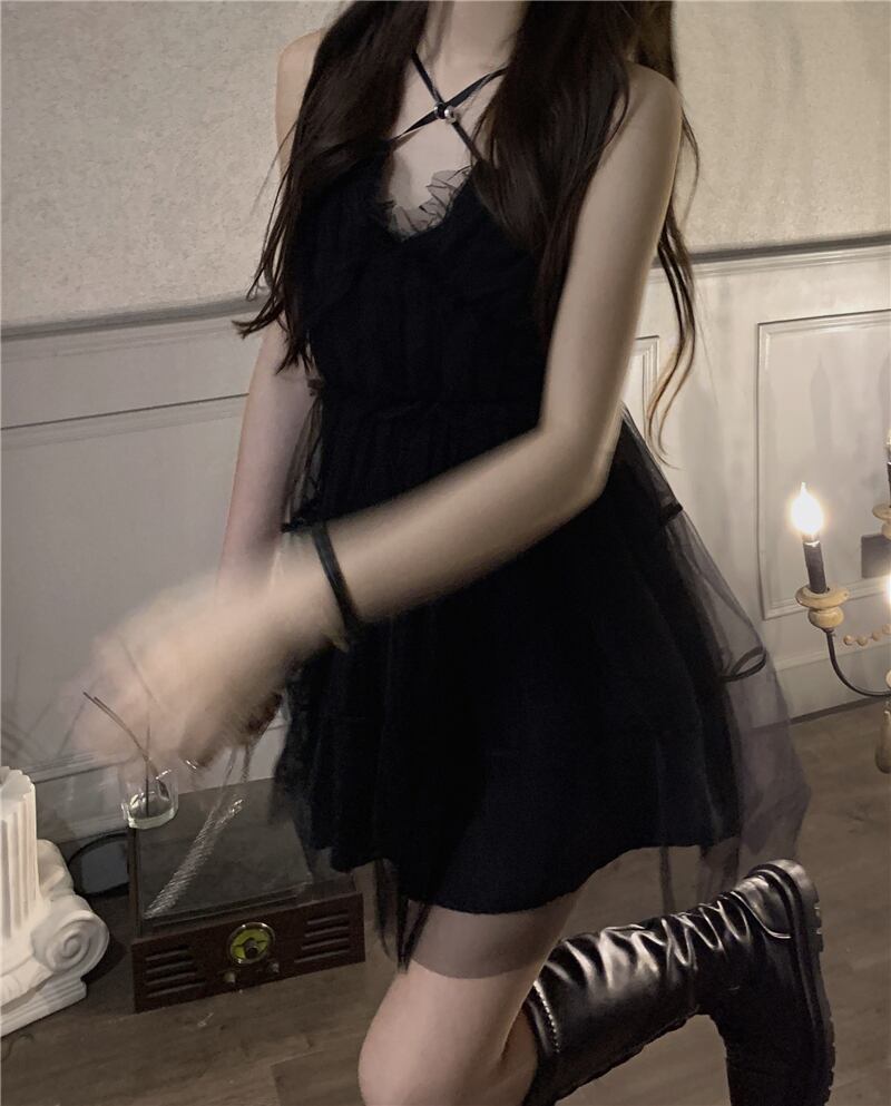 ブラックメッシュドレス サマーショートスカート 大人ガーリー スウィート キュート カジュアル 夏物 s576198926862545