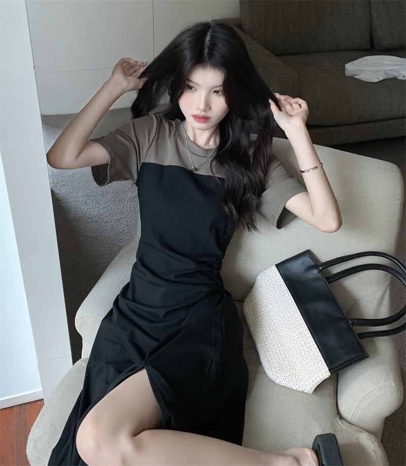 Tシャツ ドレス サマースリムスリットスカート 夏物 s576128149554919