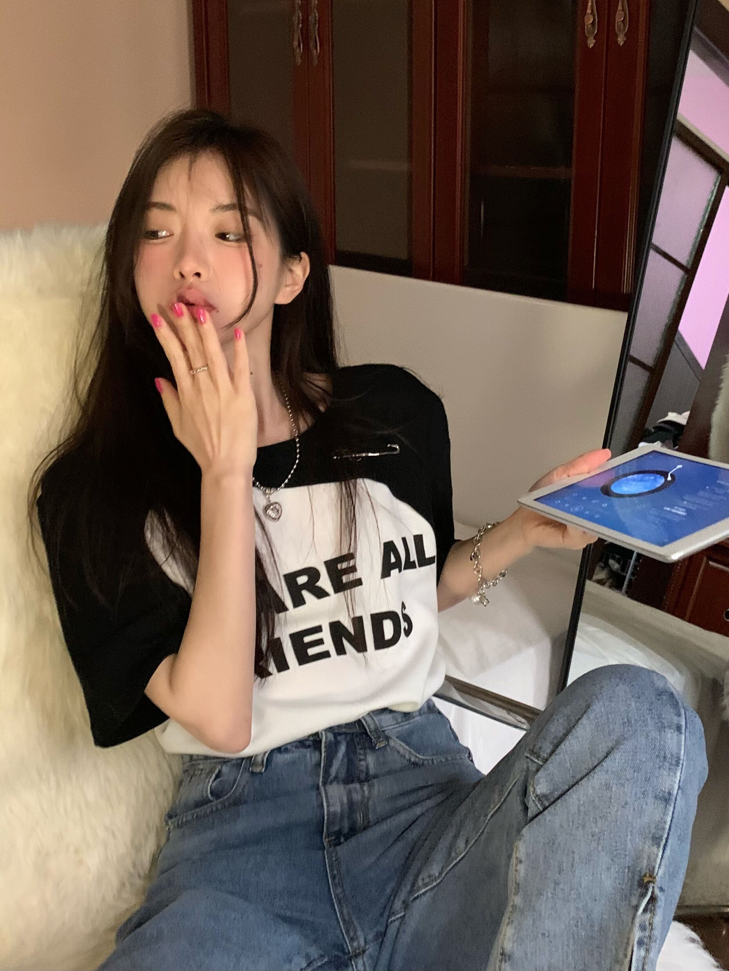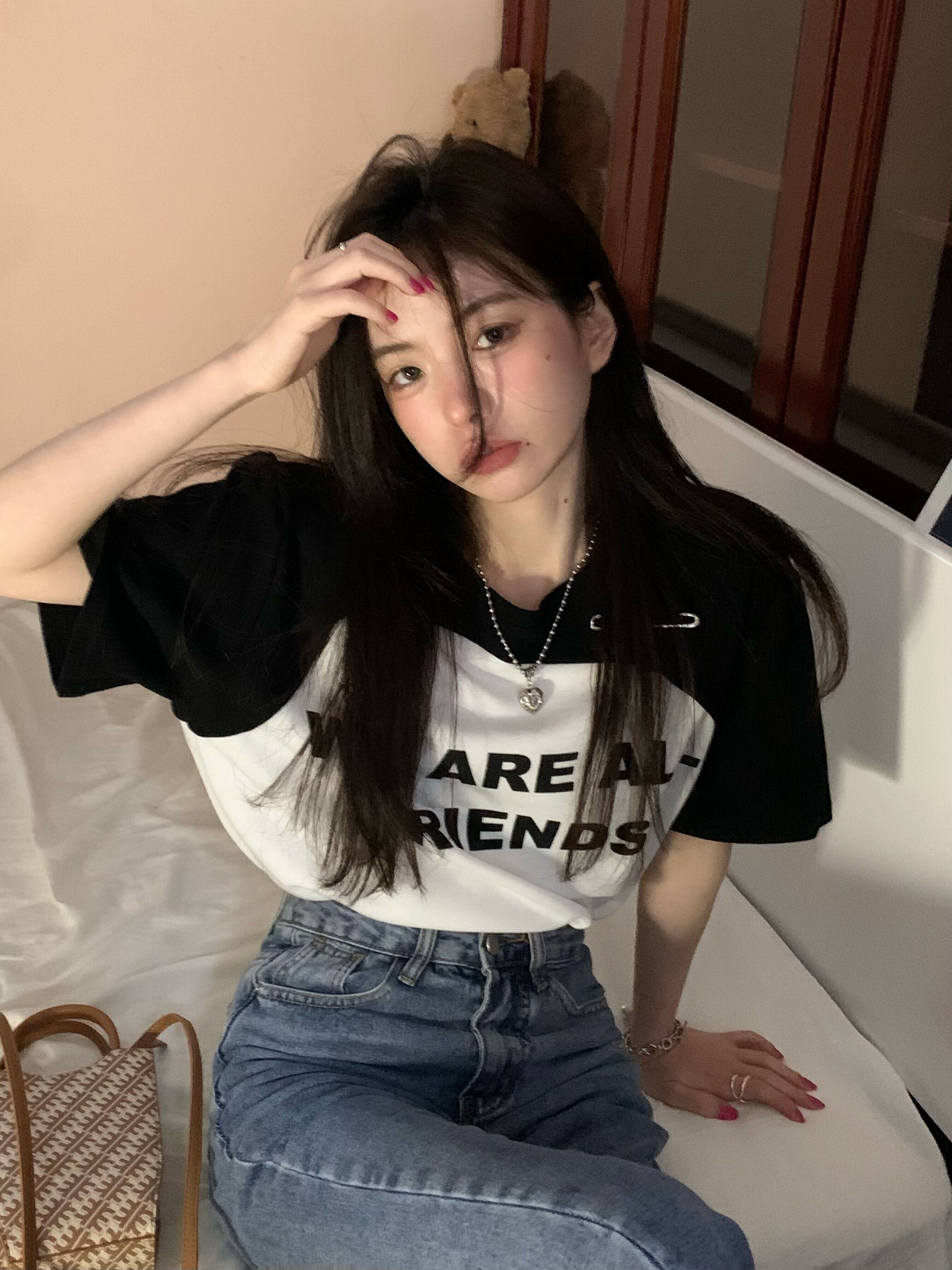 ニットプリントTシャツ サマートップス 夏物 ステッチ s576170010684528