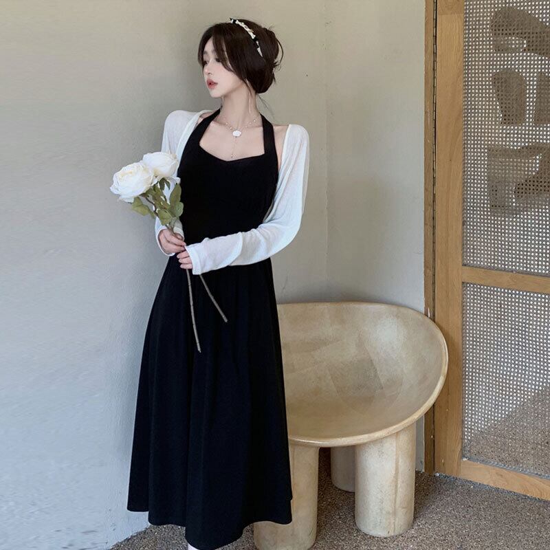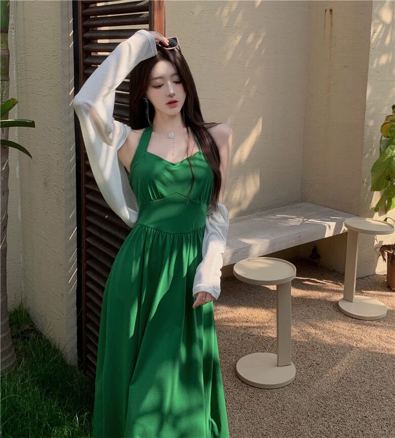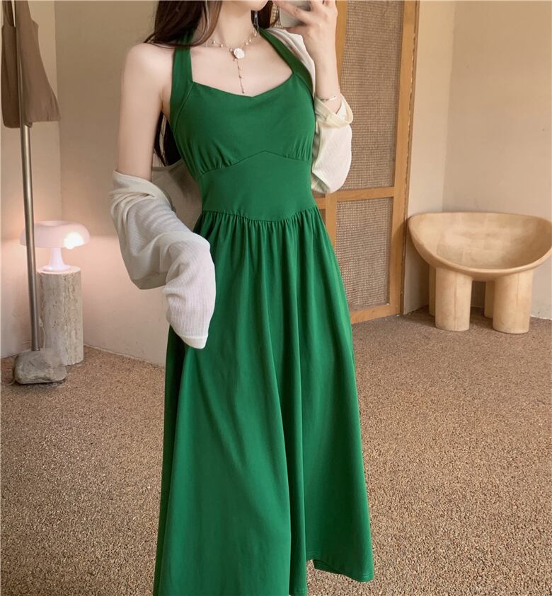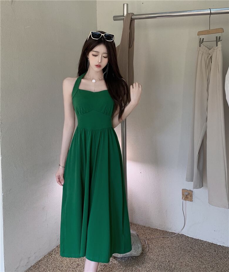 スタンダードホルタードレス サマースカート レトロ 夏物 ピュア s576123249220003