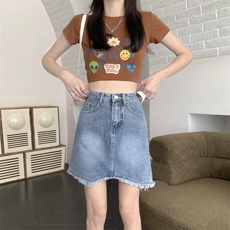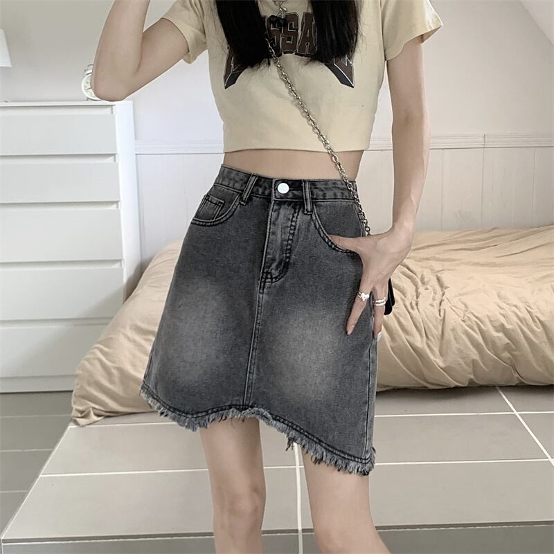 スタンダードスカート サマーハイウェストウェスト薄手Aライン レトロ 夏物 s576196381175383