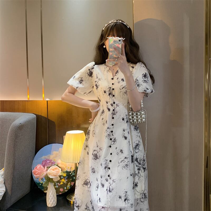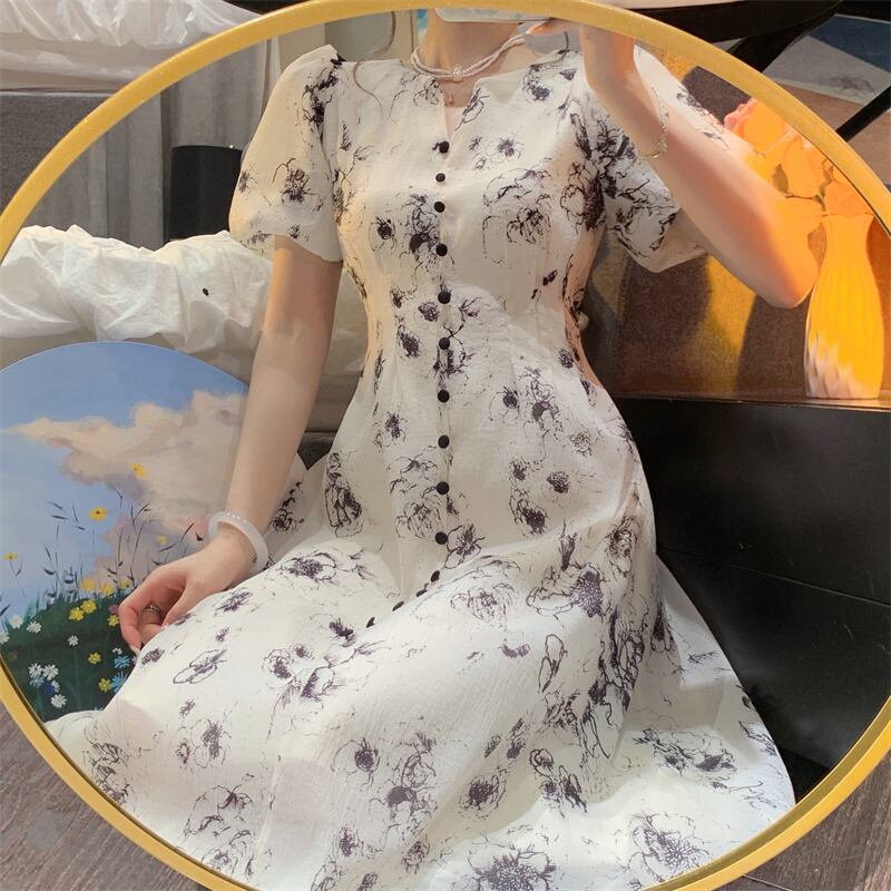 ウェストドレス Flowerデザイン カラーロングスカート サマー エレガント 夏物 フラワーデザイン s576164022199293