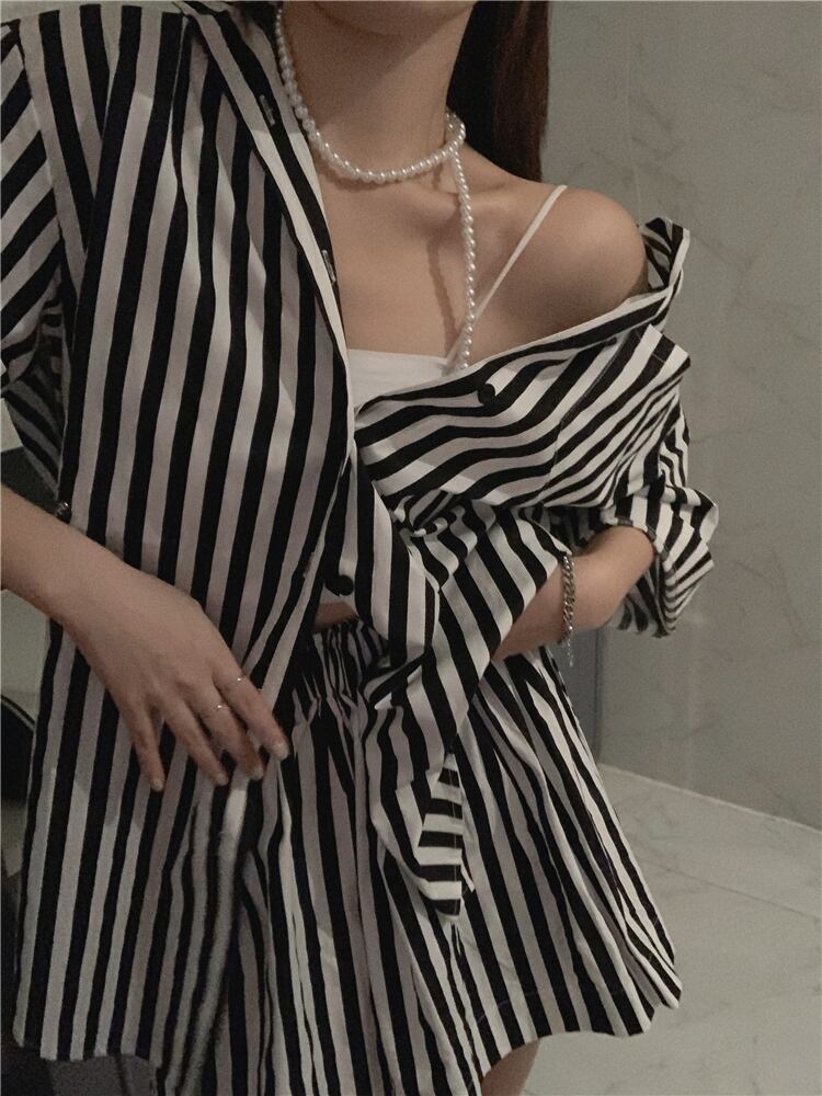 ストライプシャツ トップス サマー薄手カーディガンジャケット 夏物 s576150017730615