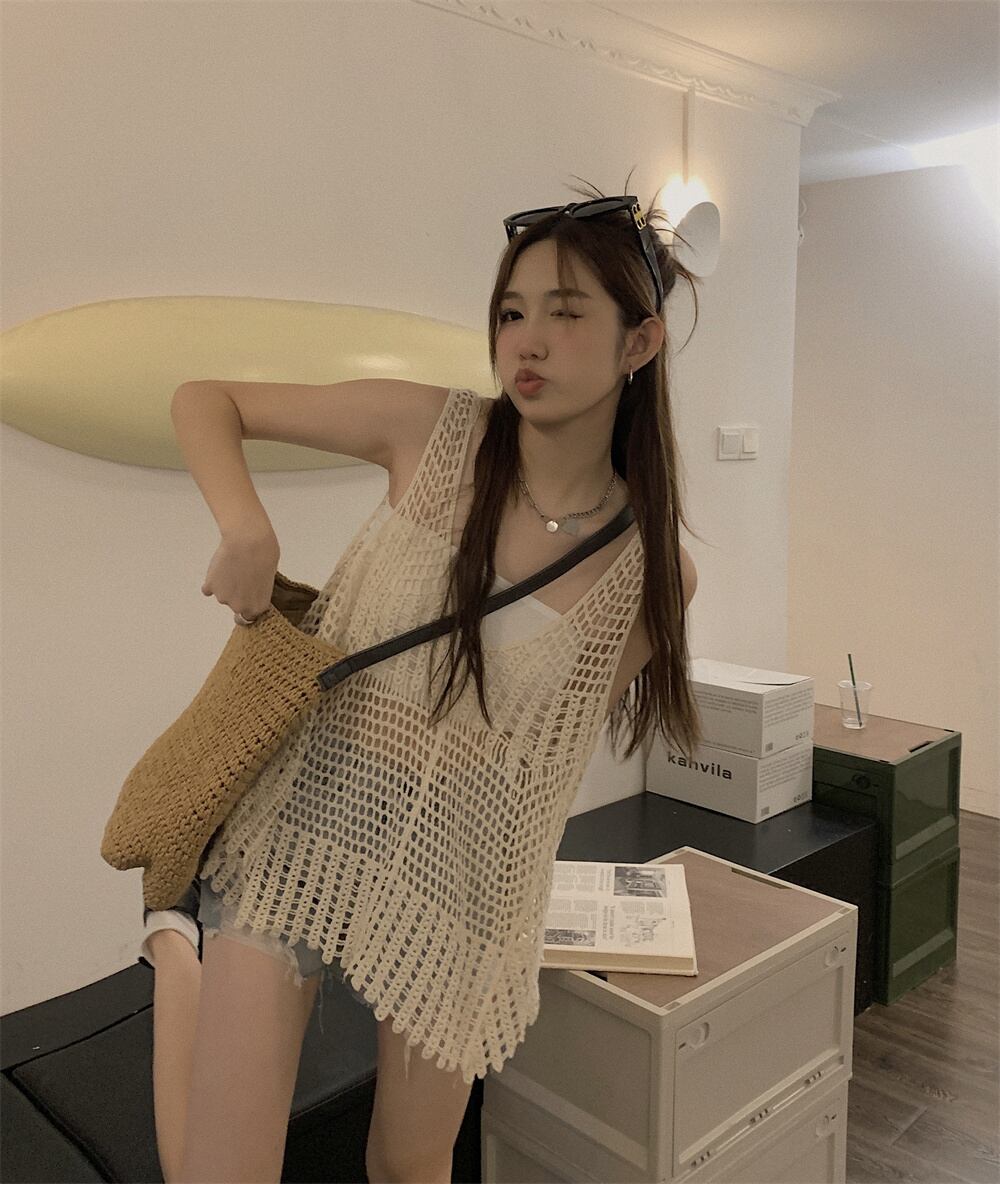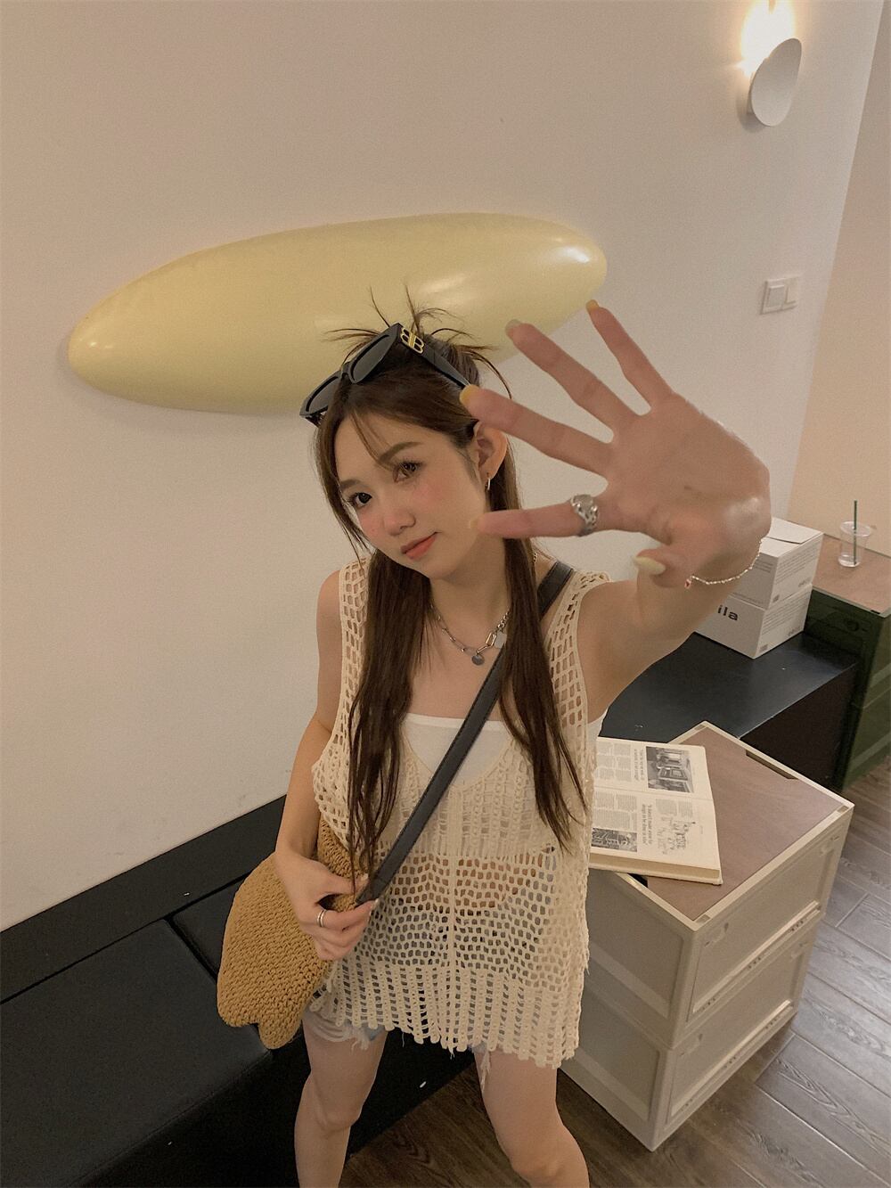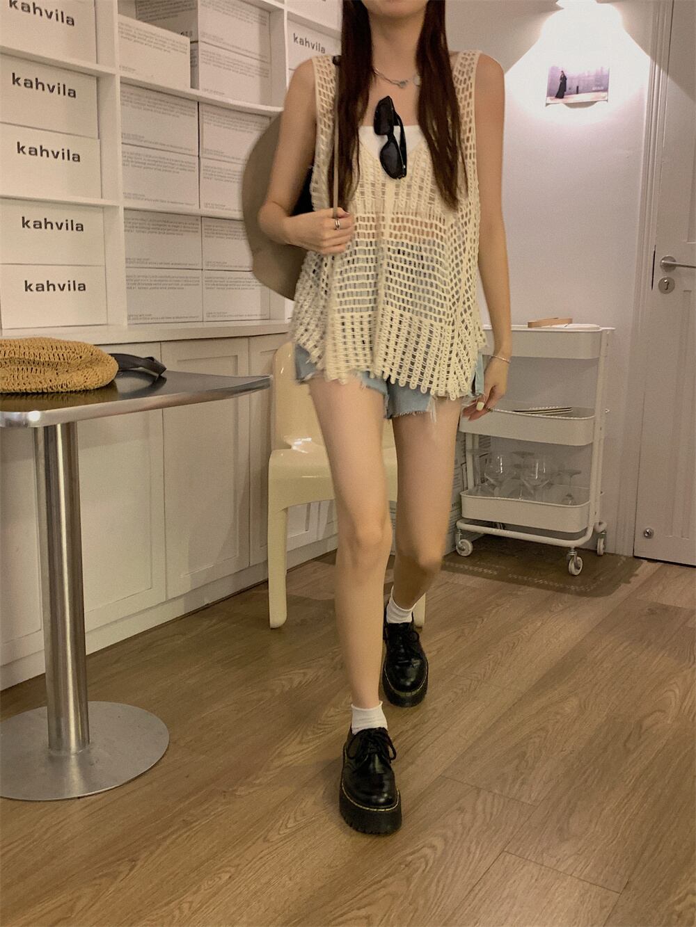 ニットセーター サマーショートノースリーブプルオーバー Vネックトップス ブラウス 半袖 ハーフスリーブ 夏物 s576116165405883