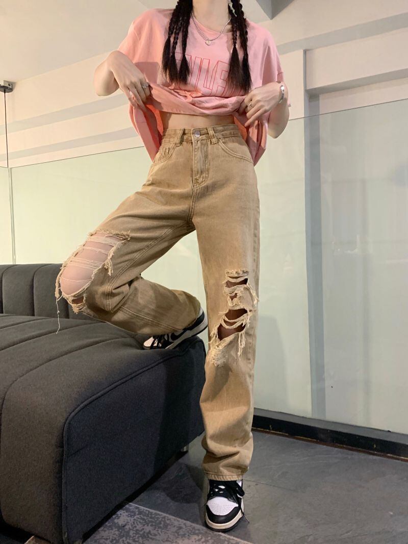 ジーンズ サマーハイウェストウェストルーズ薄手ワイドレッグパンツ ストリート 夏物 ワイドパンツ s57616386849966