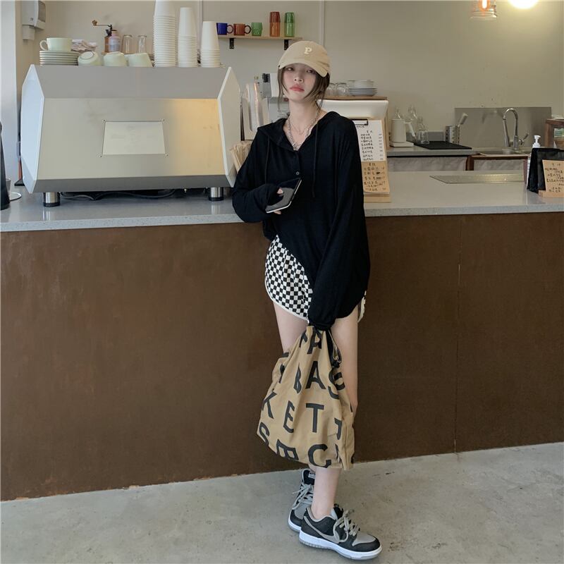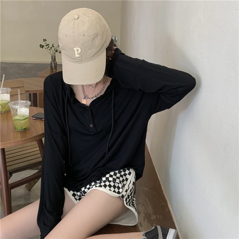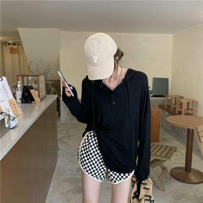 ベーシックソリッド カラーシャツ サマールーズ薄手フードTシャツ ロング 夏物 ソリッドカラー s576178404034430