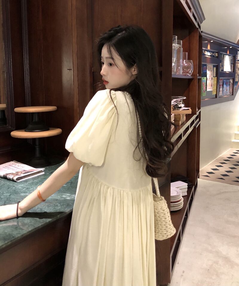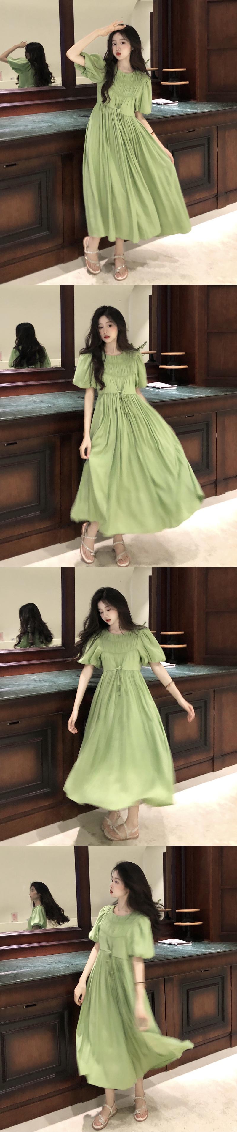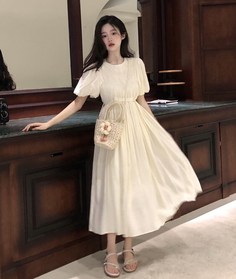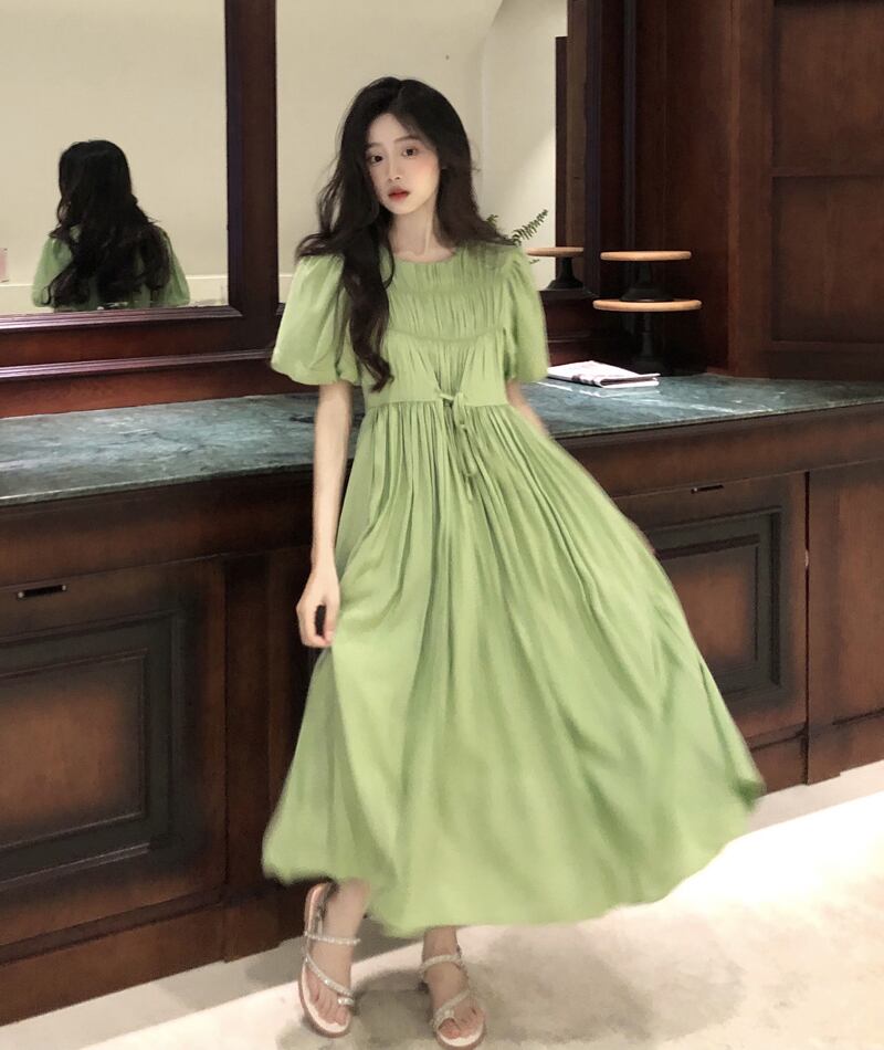 スタンダードプリーツスリーブドレス サマーウェストスリムスカート レトロ 夏物 s576188445608144
