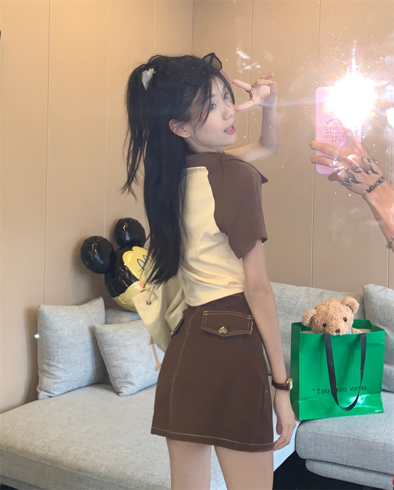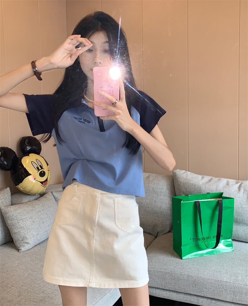 色:モカ色t-shirt,ブラックt-shirt,ブルーt-shirt,ホワイトスカート,モカスカート,ブラックスカート