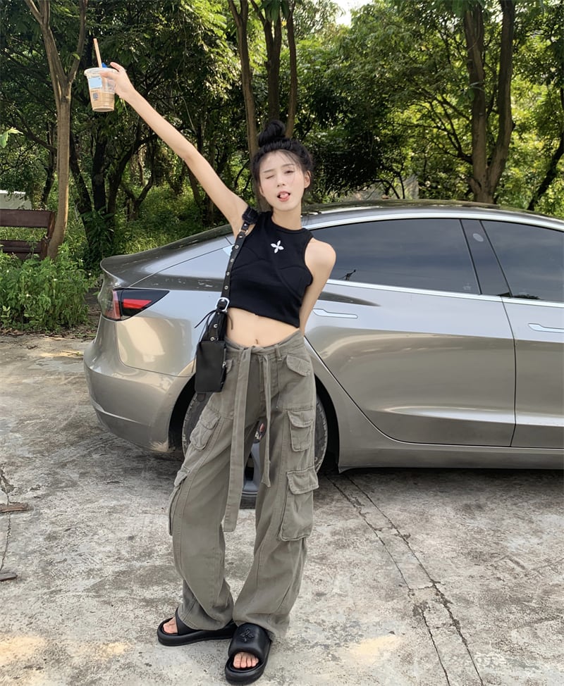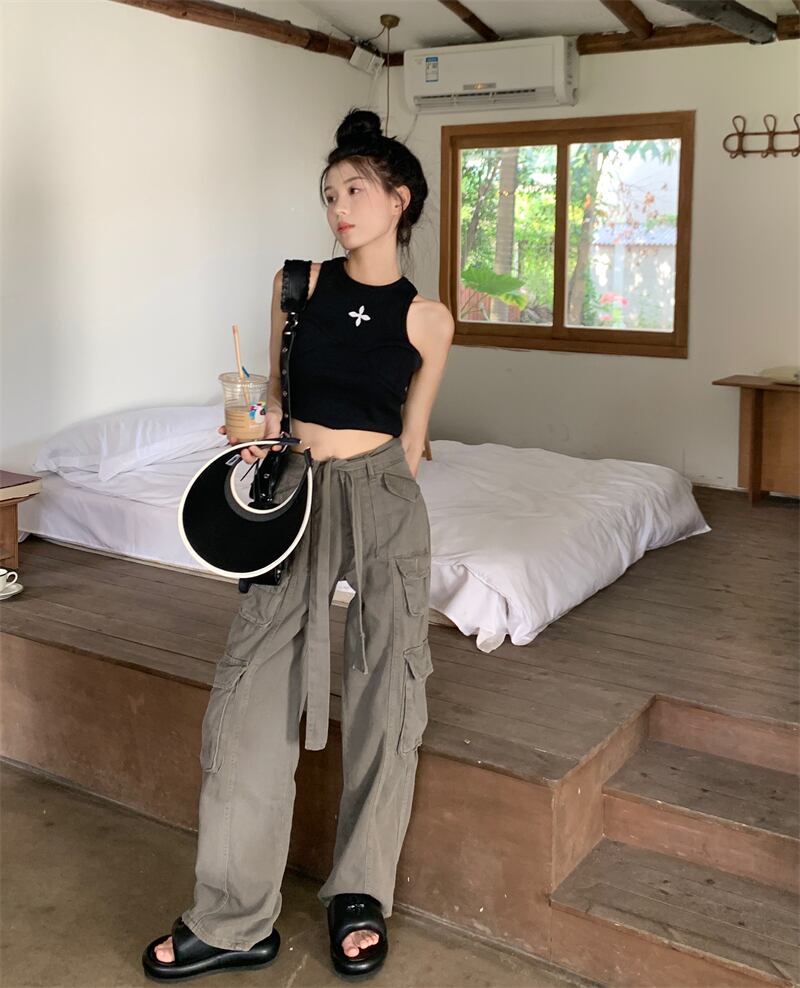パンツ サマー薄手ハイウェストルーズ ストリート 夏物 s576152765344429