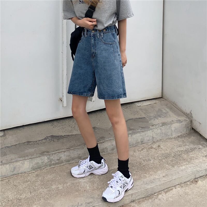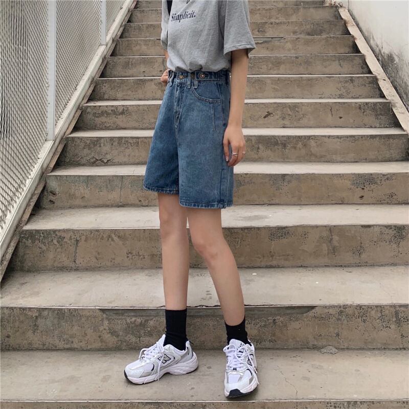 ブルーショーツ サマールーズハイウェスト薄手パンツ スタンダード レトロ 夏物 ブルマー s576157809769307