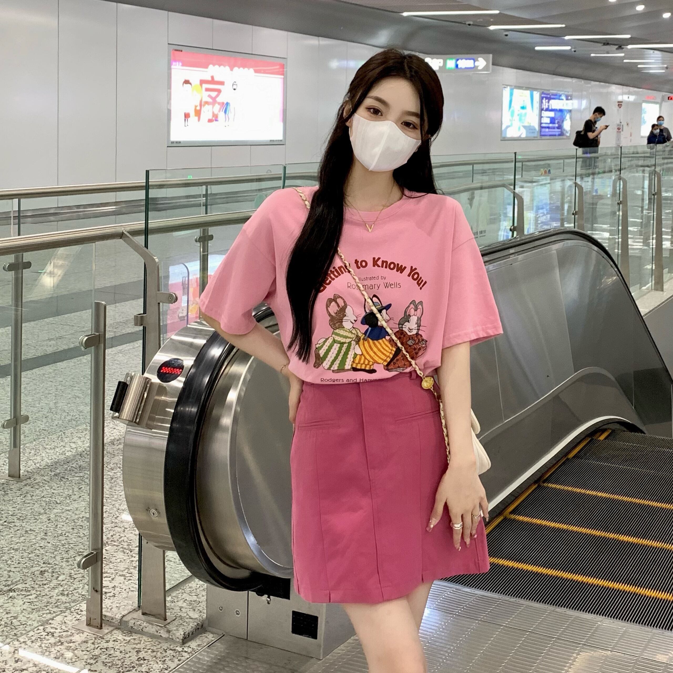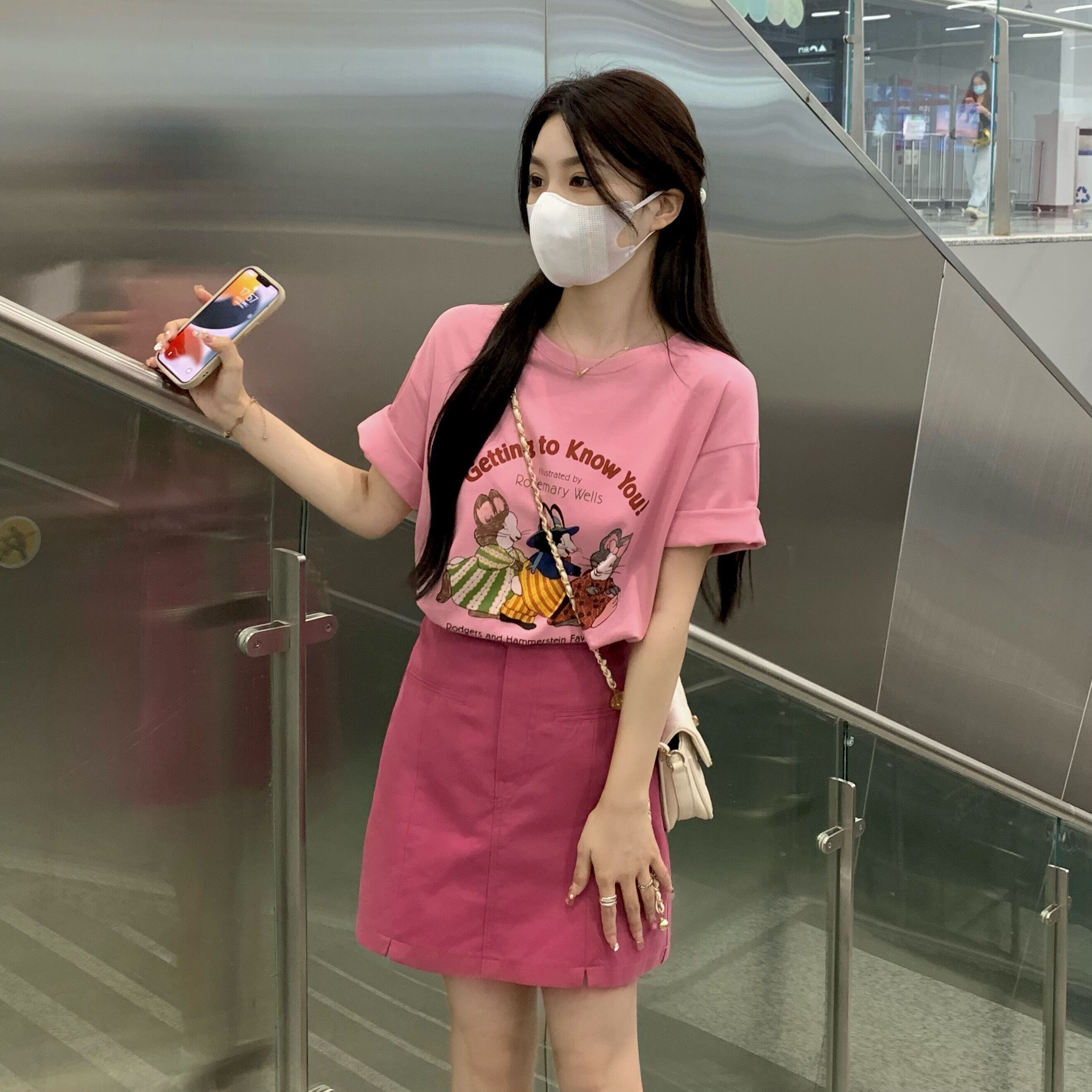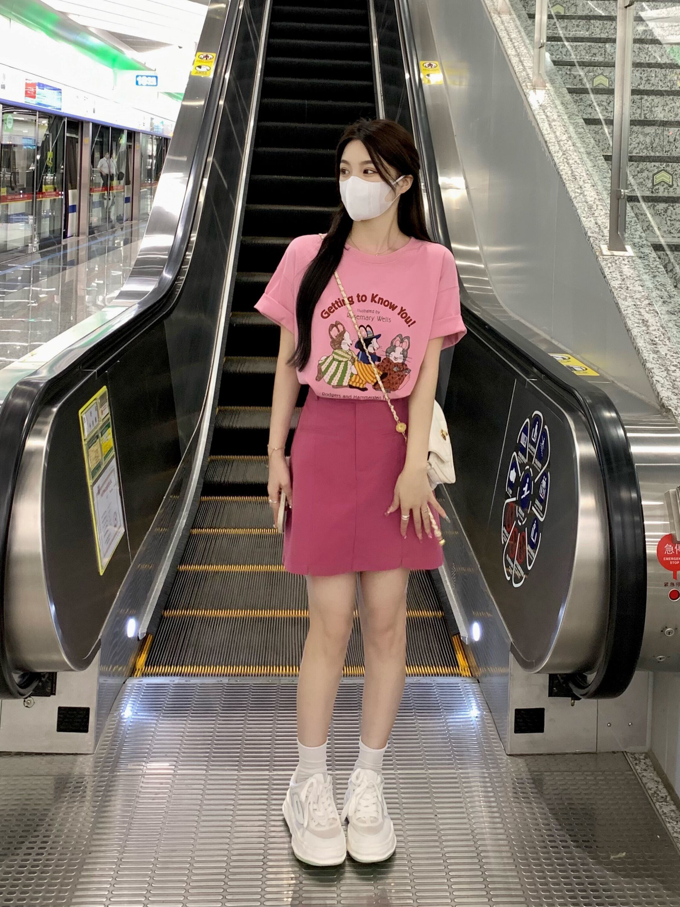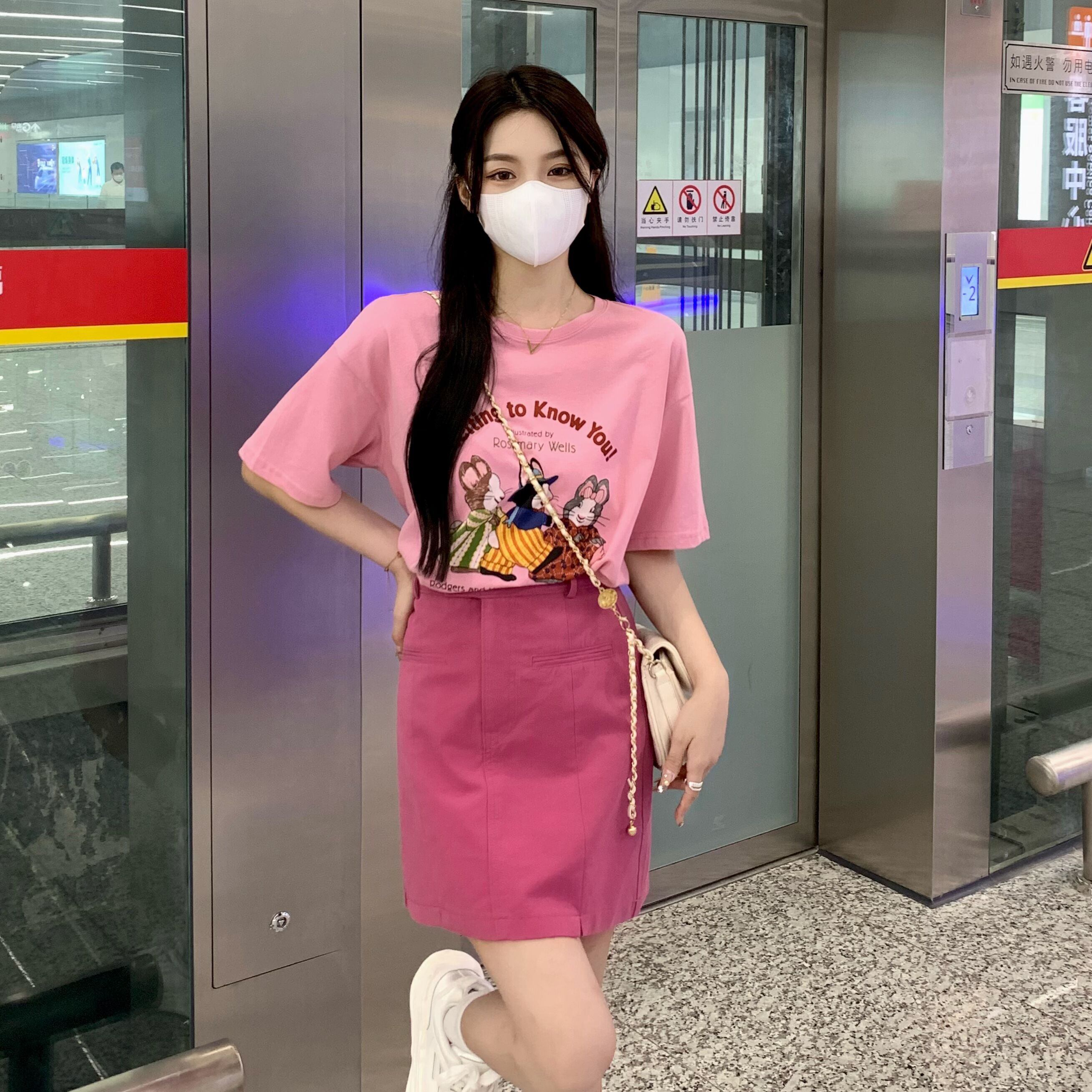 色:ピンクt-shirt,plumスカート