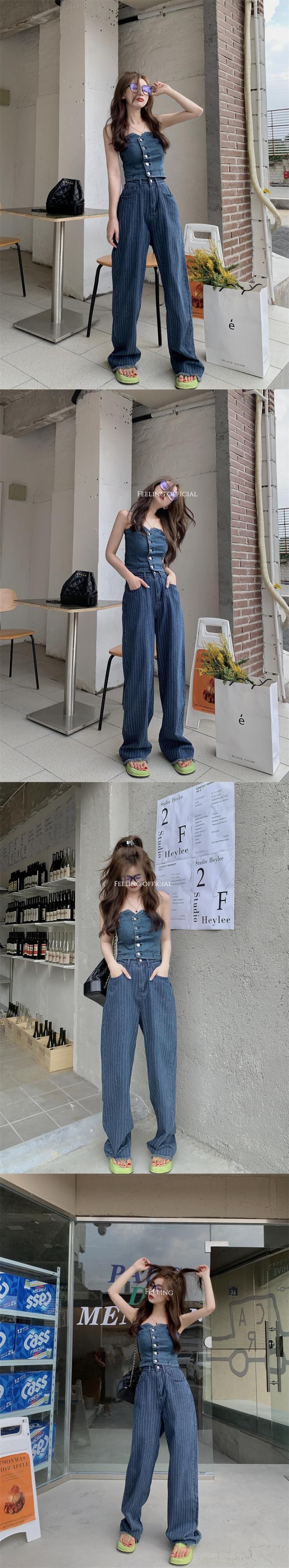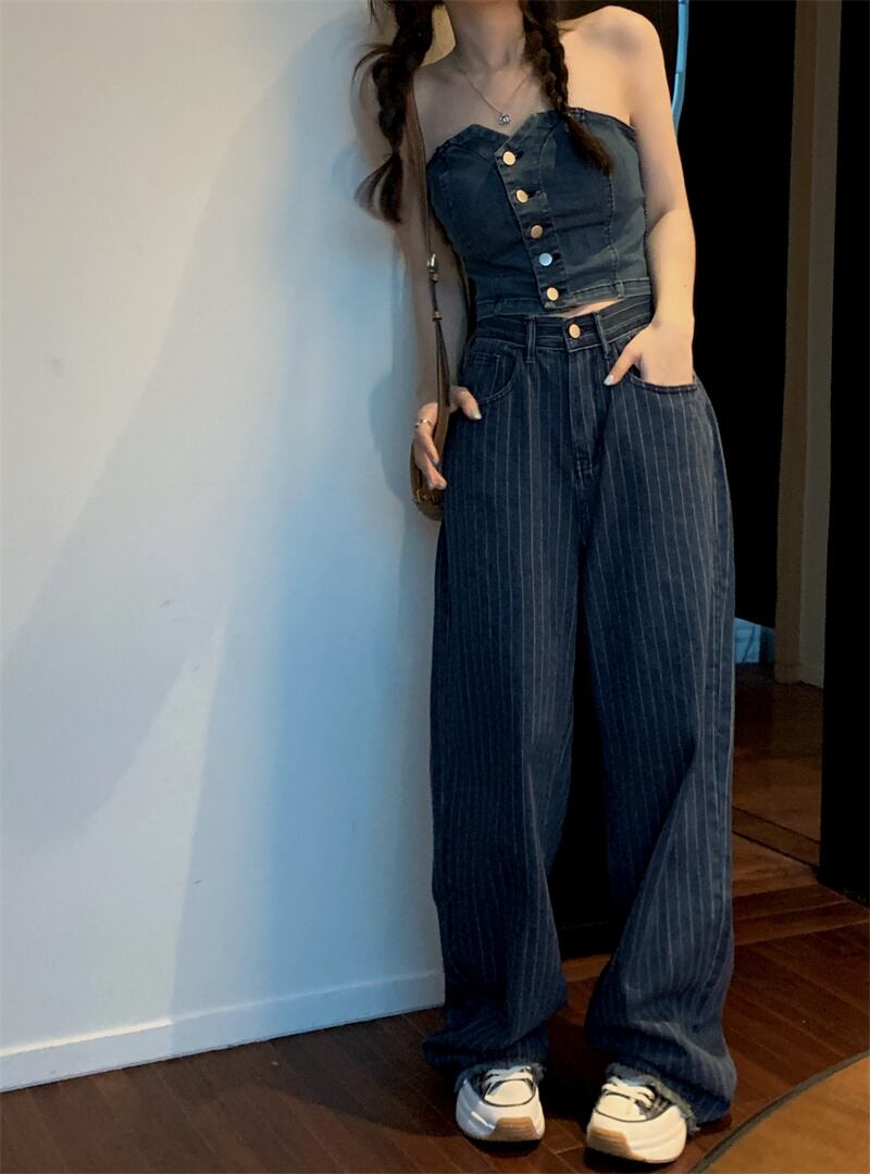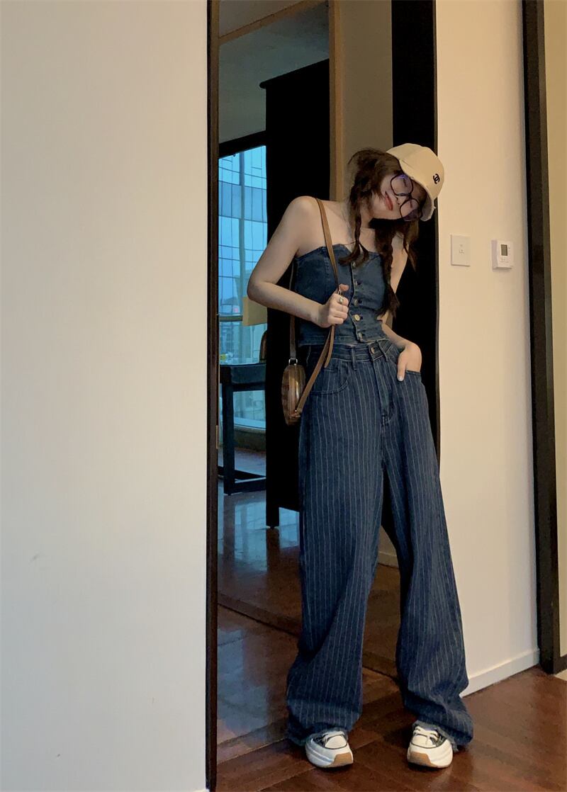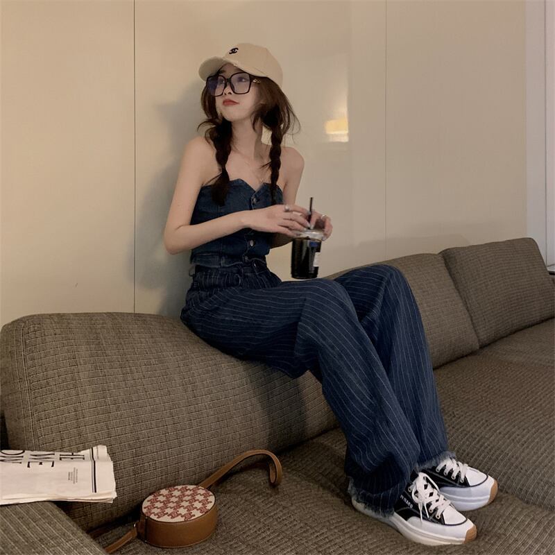 スタイルスタンダードストライプパンツ サマーハイウェスト レトロ 夏物 s576161182953549