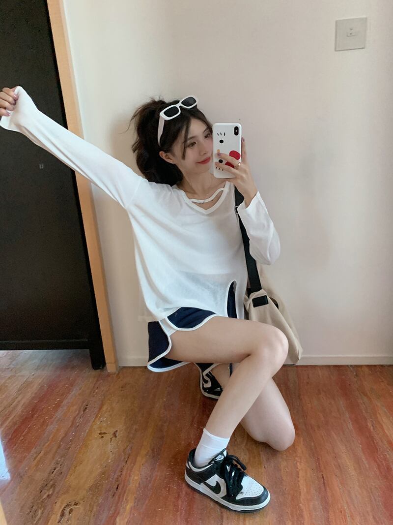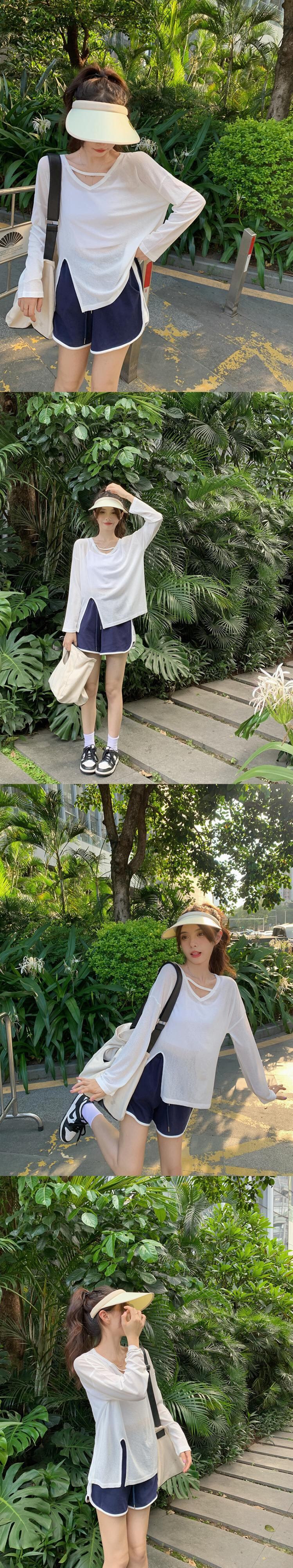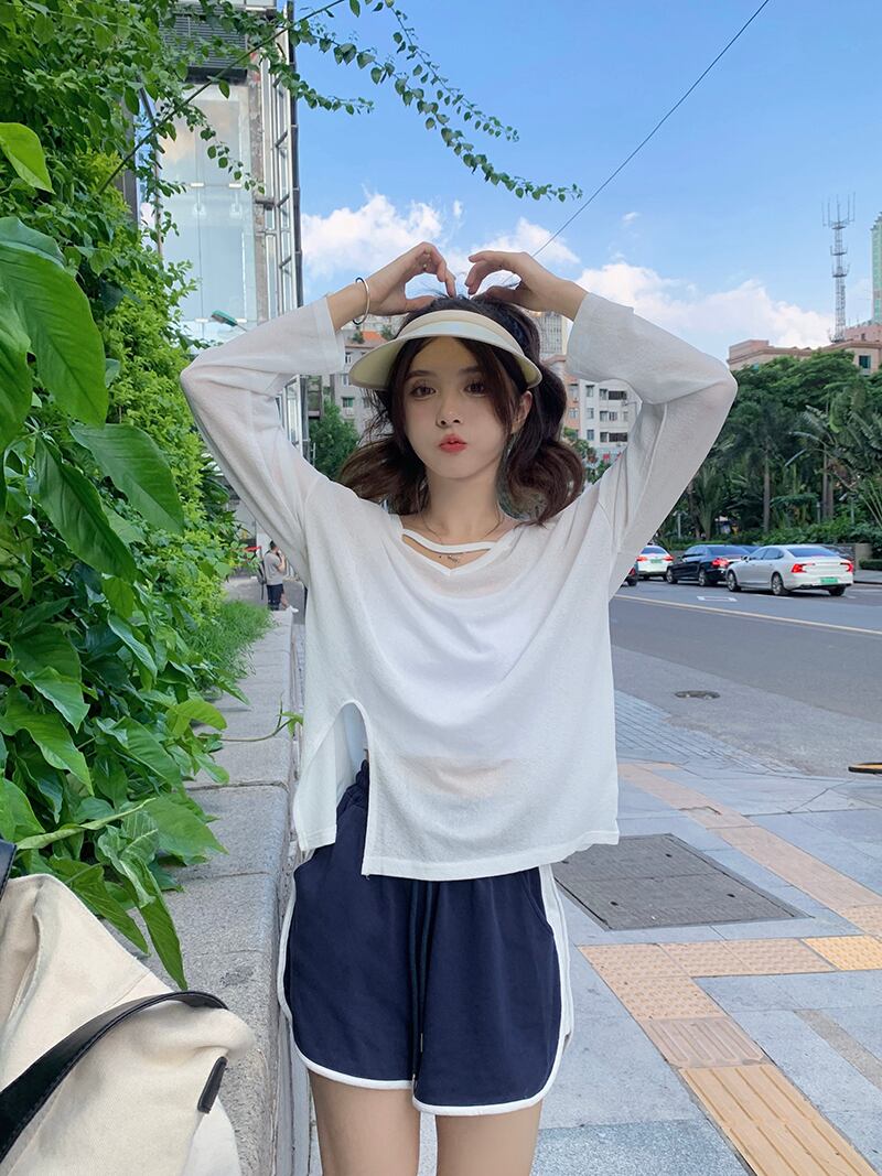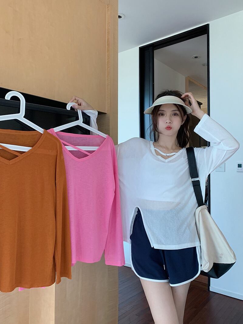 ホワイトTシャツ 薄手サマールーズスリットトップス ロング 夏物 s576121897237380