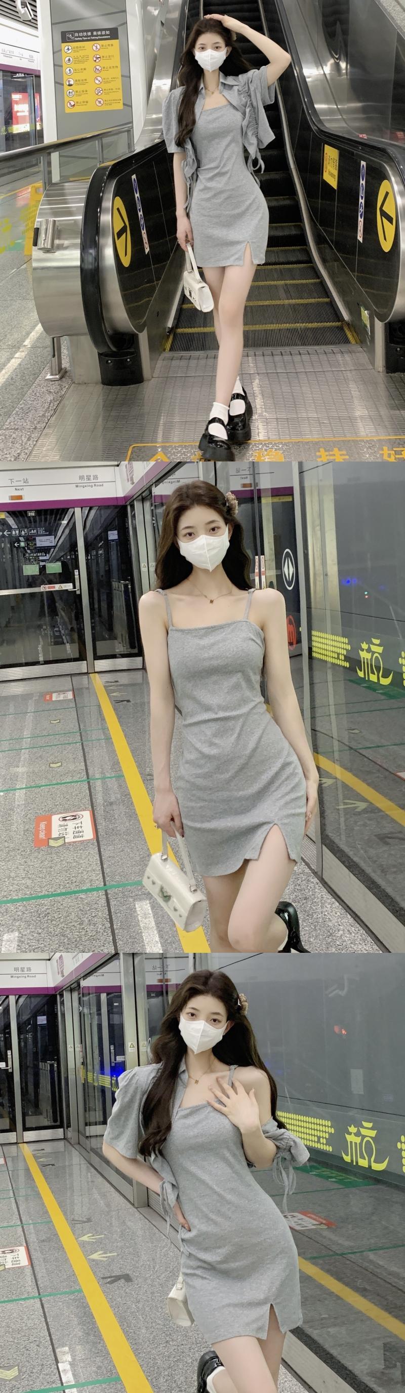 サマースタイルハイウェストウェストスリムスリットスカート ドレス 夏物 ピュア s576146842347782