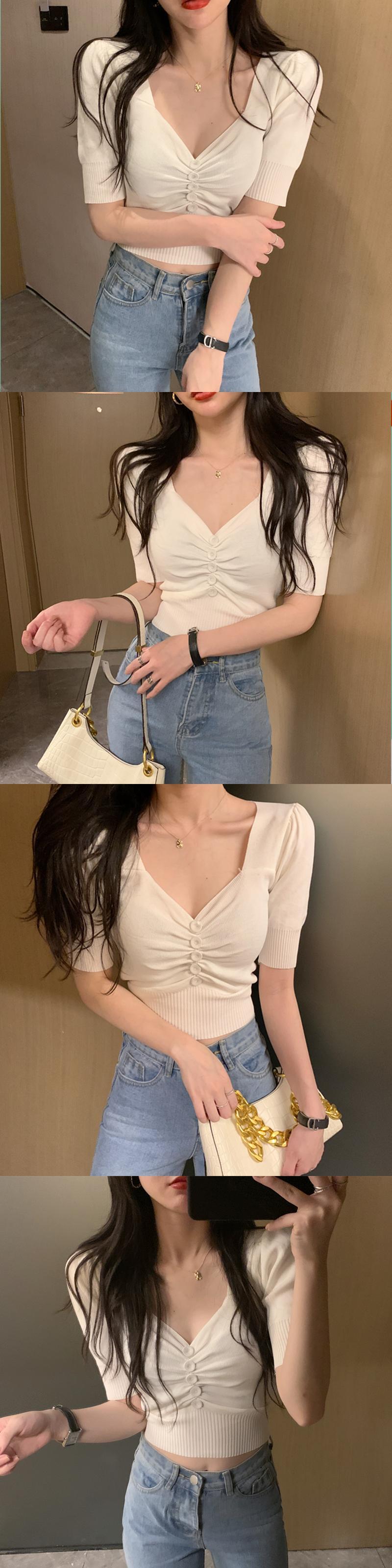 スタンダードVネックスリーブニットセーター サマーTシャツ ショートトップス レトロ 夏物 s576185764934228