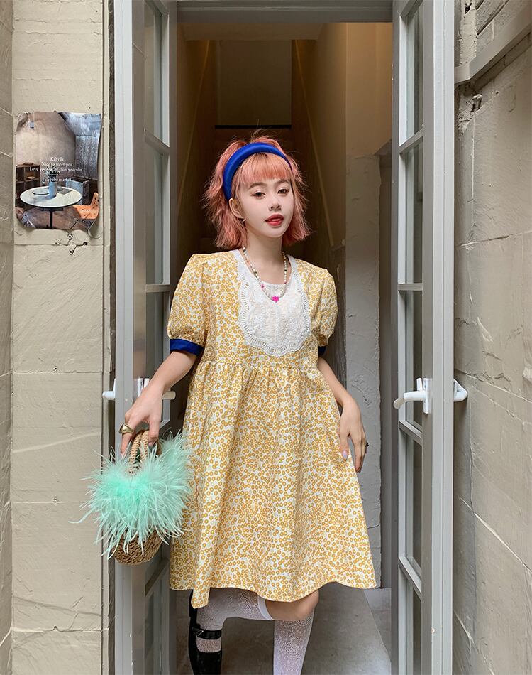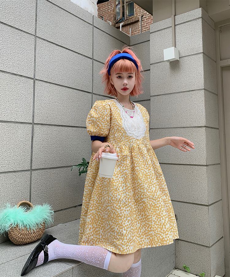 スリーブフローラルドレス サマースタイルスカート 大人ガーリー スウィート キュート カジュアル 夏物 花柄 ピュア s576169524250564