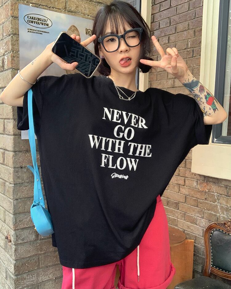 ルーズプリントカジュアルTシャツ サマーラウンドネックプルオーバー トップス 夏物 Oネック s576128377101313