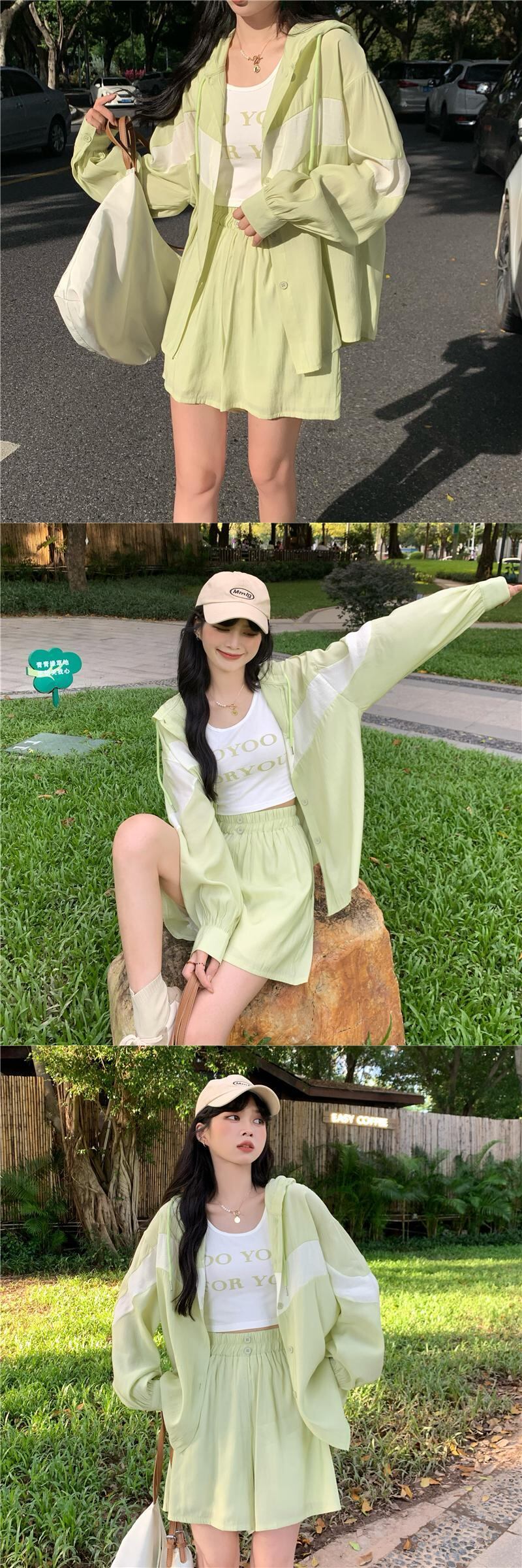 色:ピンクjacket,ピンクshorts,ダークグリーンjacket,ダークグリーンshorts,ライトグリーンcoat,ライトグリーンshorts,ピンクvest,ダークグリーンvest,ライトグリーンvest
