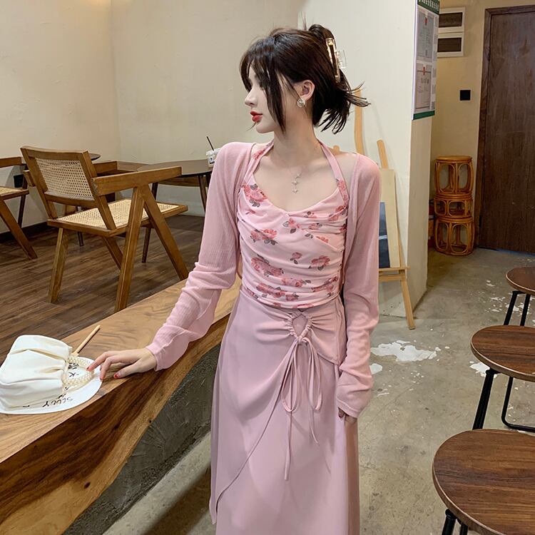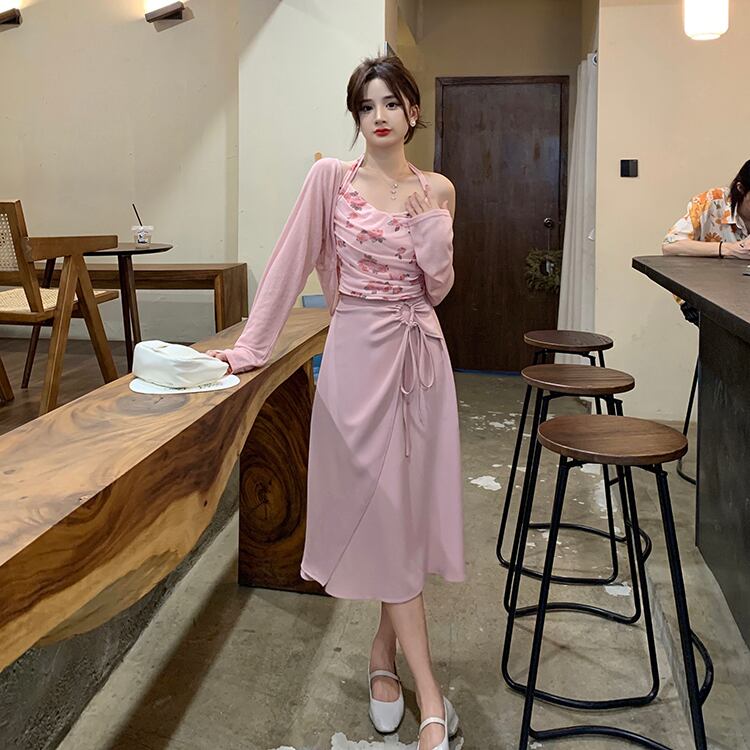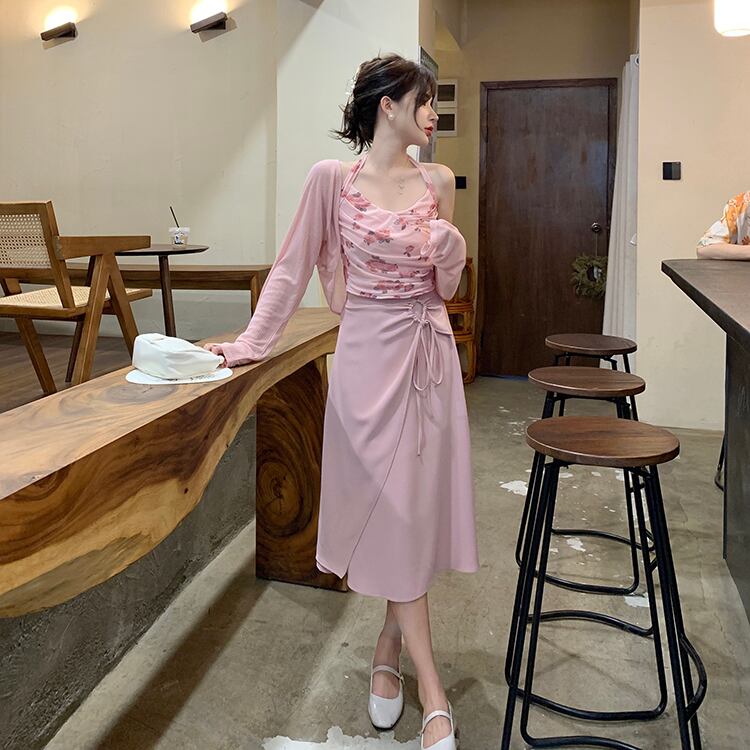 スカート サマーAラインハイウェストウェストロング ピンク 夏物 s576138446019791