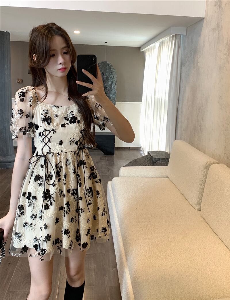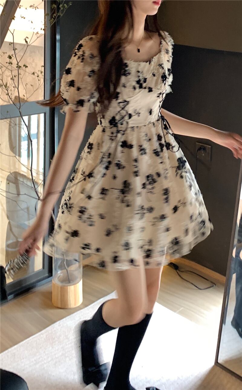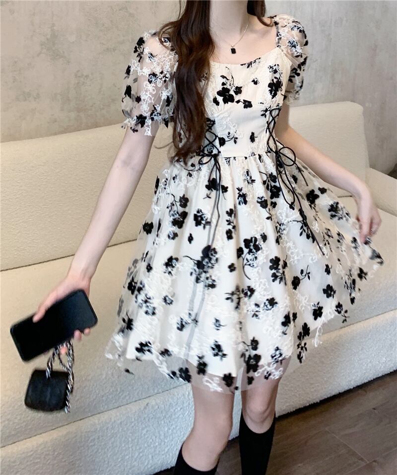 スリーブフローラルドレス サマーショートスカート 夏物 花柄 s57619149288745