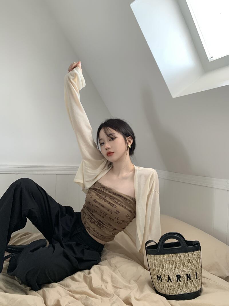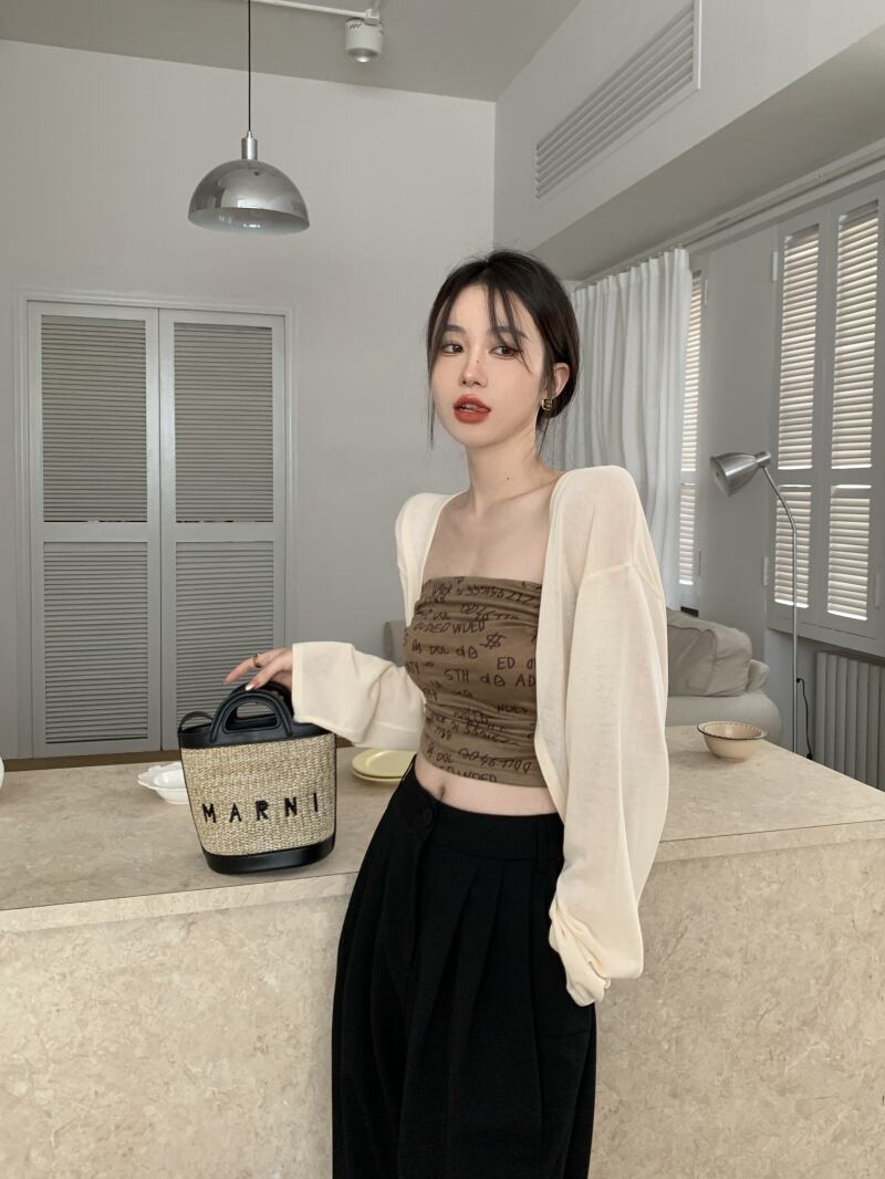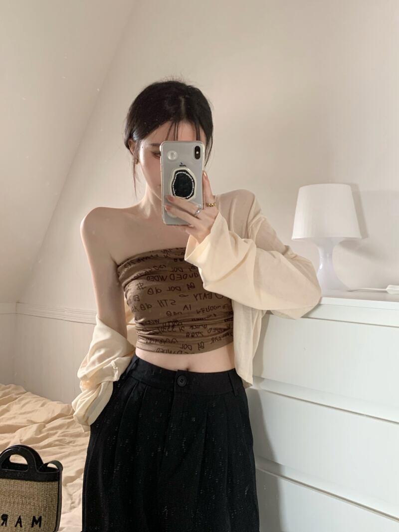 色:ベージュcardigan,モカ色tubeトップ