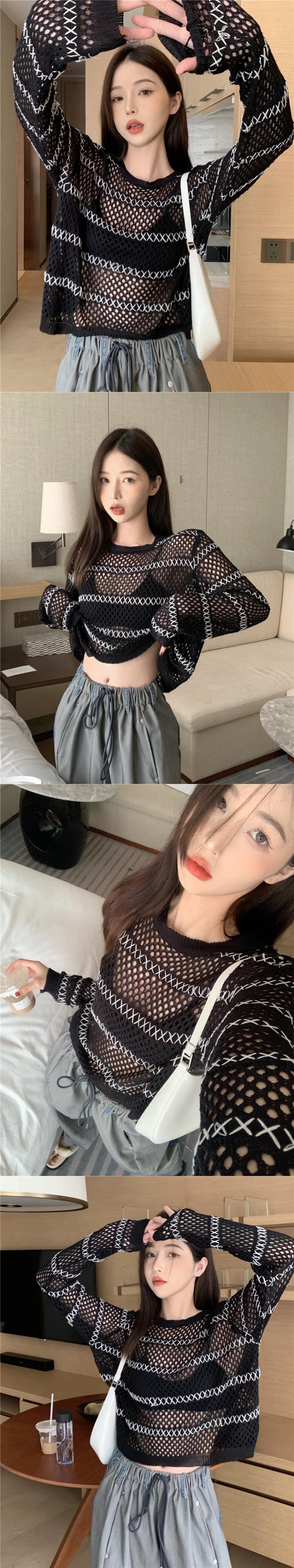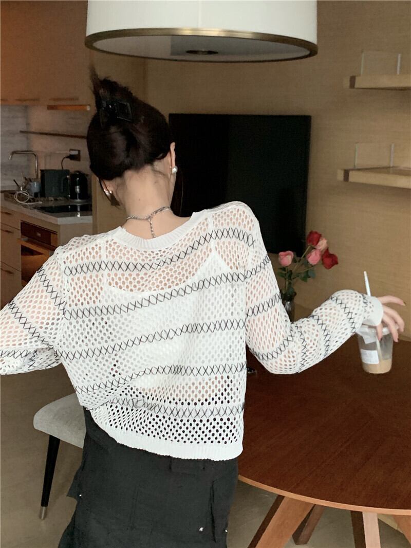 ブラウス サマー薄手ニットセーター ショートトップス ロング 夏物 s576116363121757