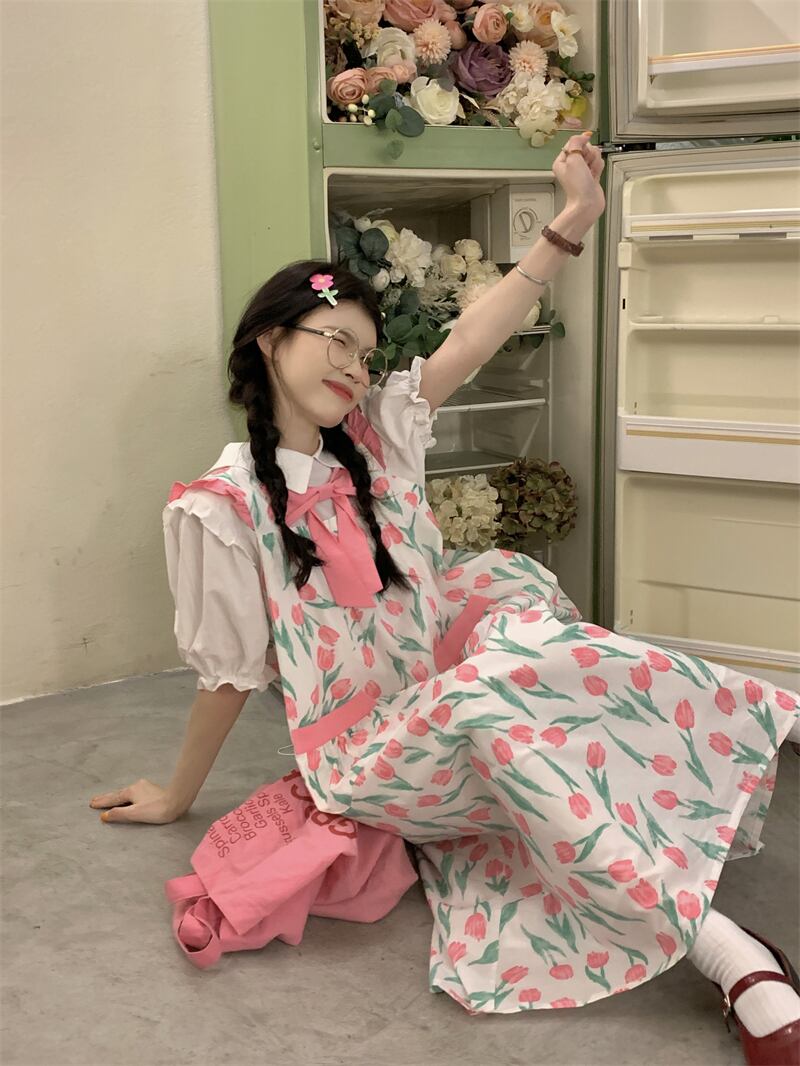 フローラルドレス サマースタイルリボンロングスカート 大人ガーリー スウィート キュート カジュアル 夏物 花柄 s576193531814179