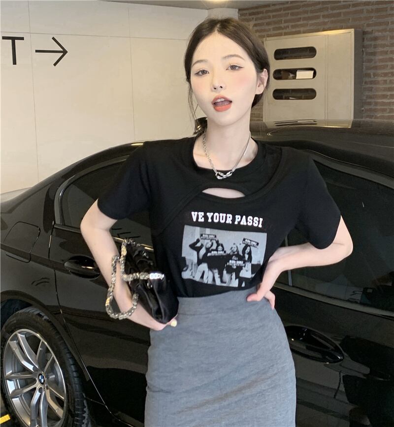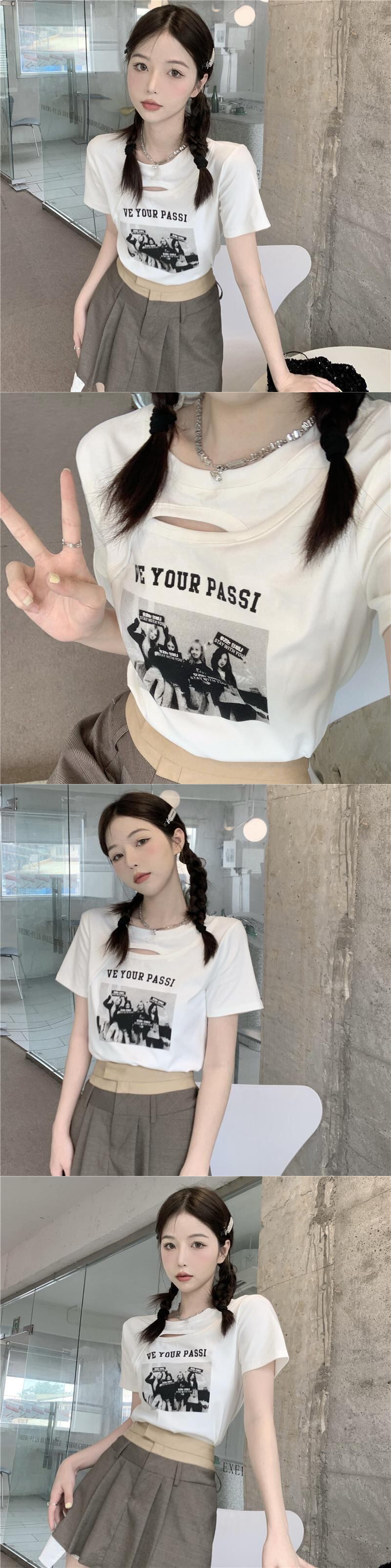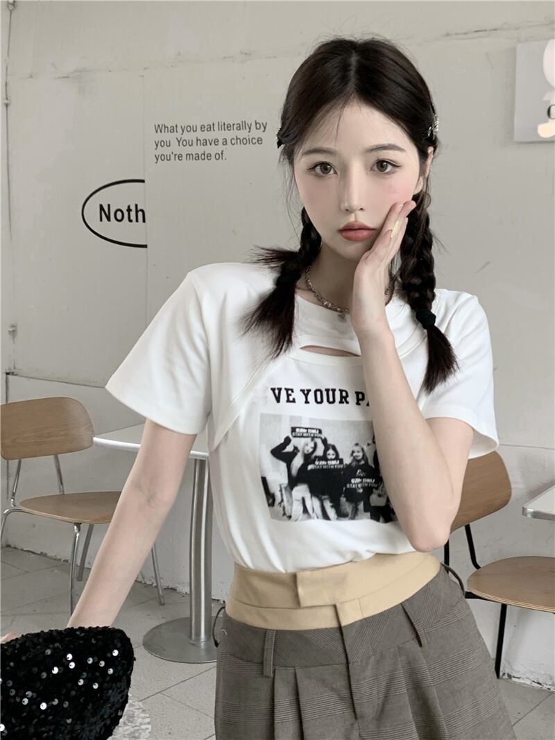 ホワイト半袖スリーブTシャツ サマースタンダードスリムトップス ショート レトロ ハーフスリーブ 大人ガーリー スウィート キュート カジュアル 夏物 s576128965339648